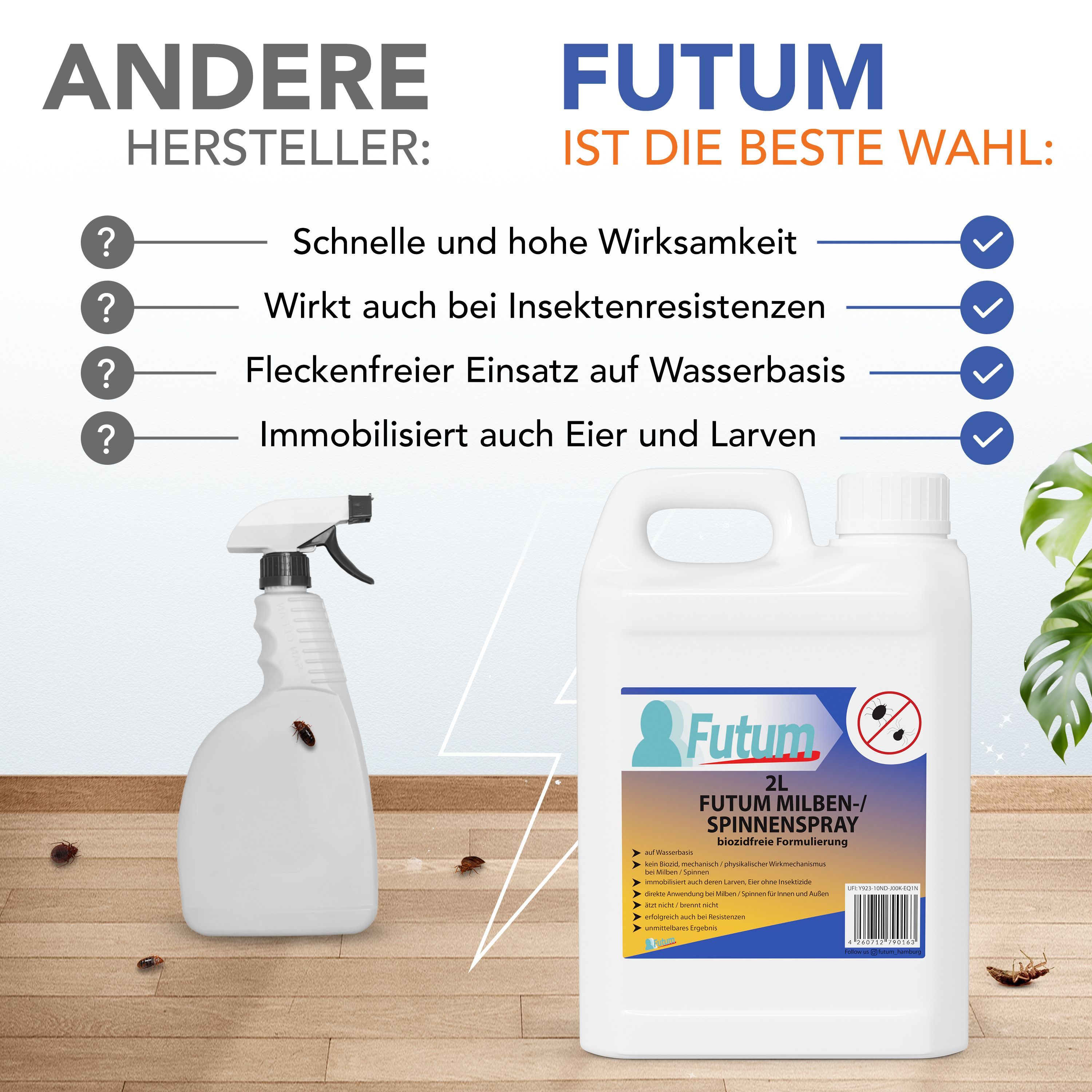 FUTUM 2L + 750ml Milbenspray / Spinnenspray Milbenmittel Ant-Spinnen-Mittel Spinnen A