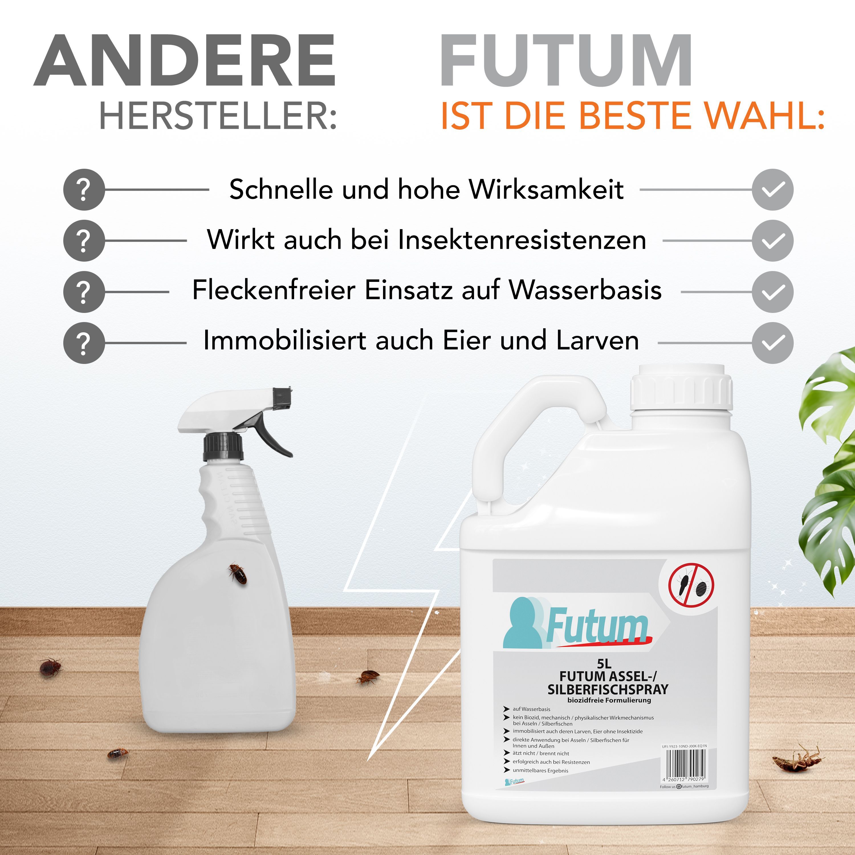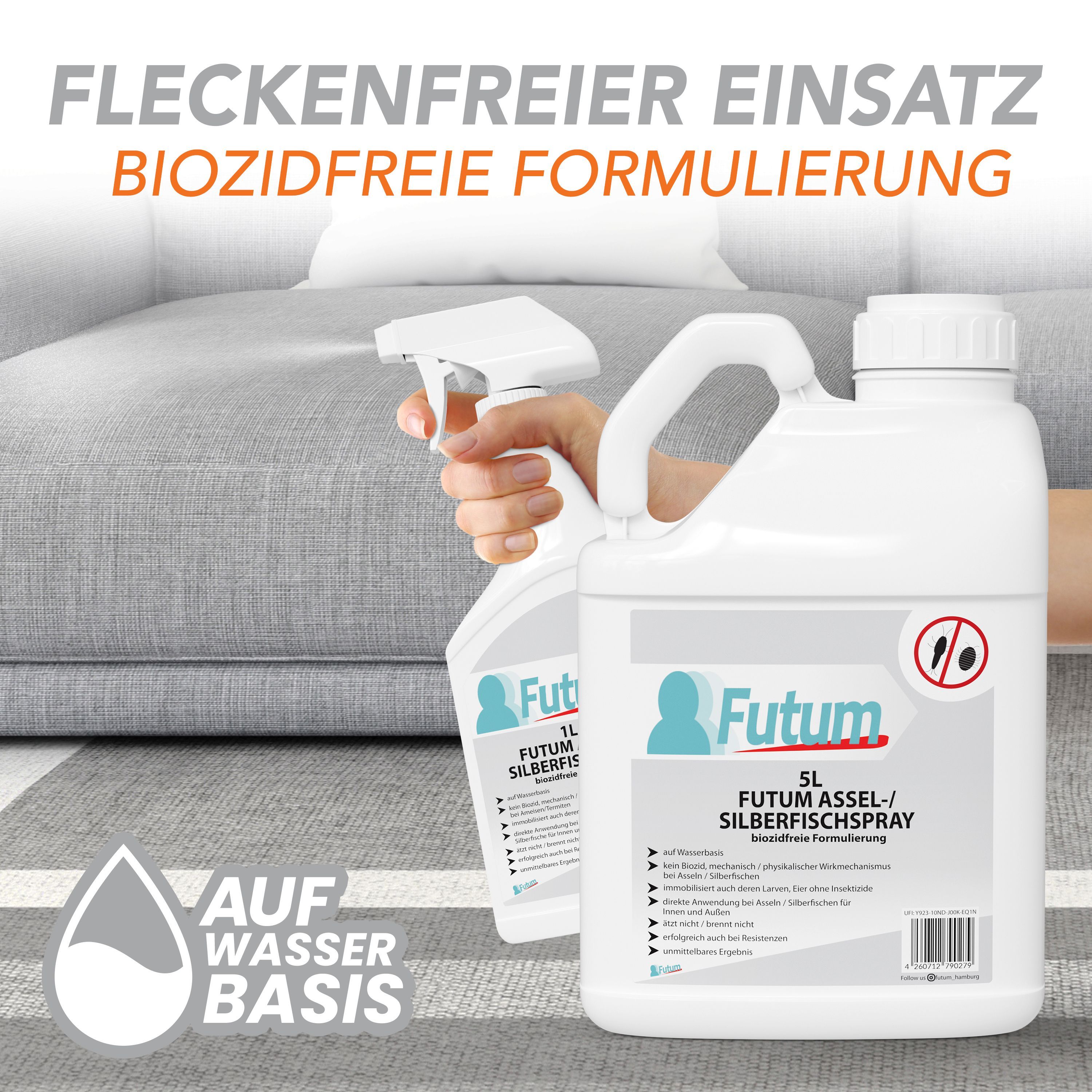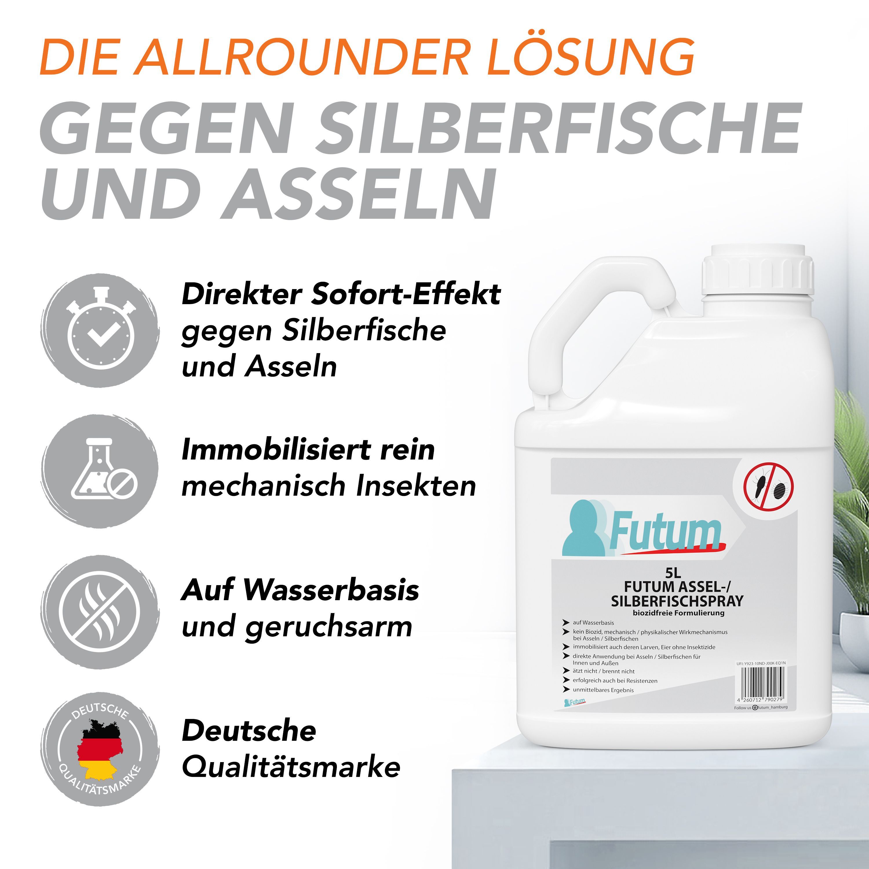 FUTUM 5L Silberfischspray / Asselspray Silberfische bekämpfen Assel Abwehr