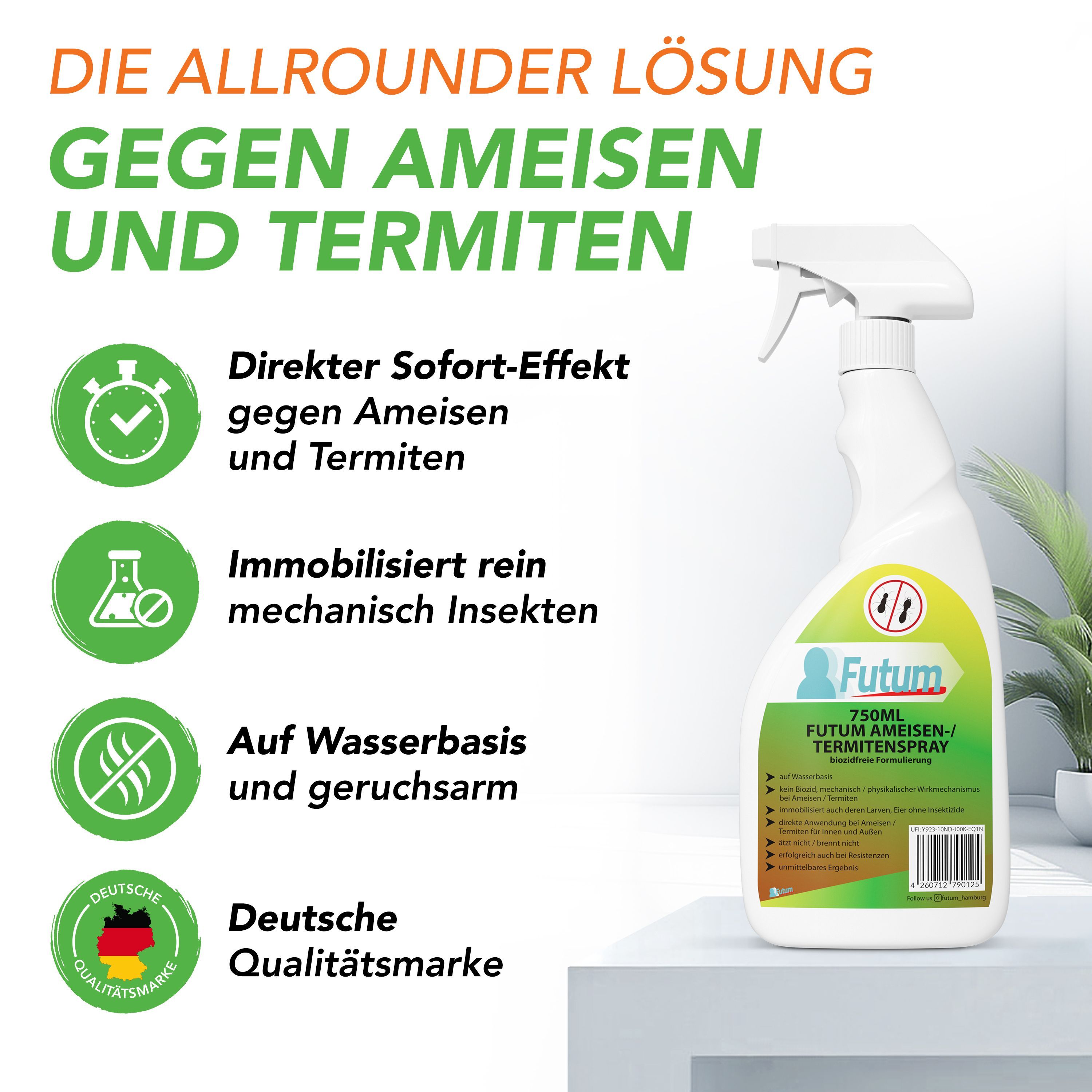 FUTUM 750ml Ameisenspray / Termitenspray Ameisen bekämpfen abwehren Insektenspray