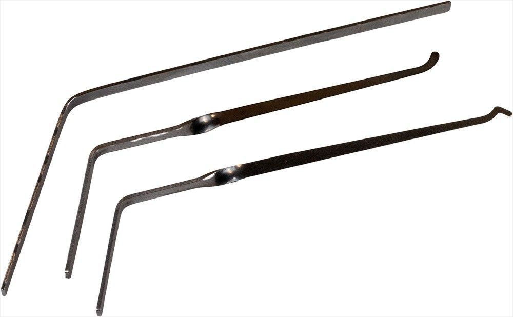 G-8-22 - Evasion and Escape Set GS Auf vielfachen Wunsch hat Peterson dieses neue E&E Set für Single Pin Picker herausgebracht. Der Single Wave G-8 verhält sich wie ein Rake. Die Nachfrage nach tieferen Pickfähigkeiten war hoch: dies geht mit dem G-22-Haken 4. Die Länge von ca. 1,25 cm vor der Drehung ermöglicht es, die meisten, wenn nicht alle Schlösser zu knacken.