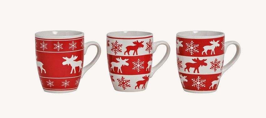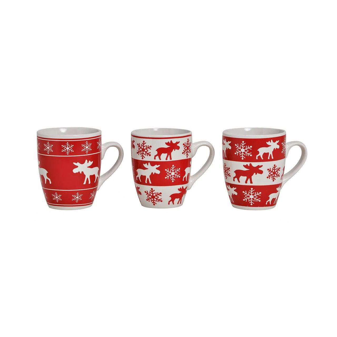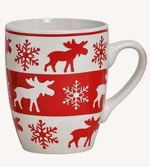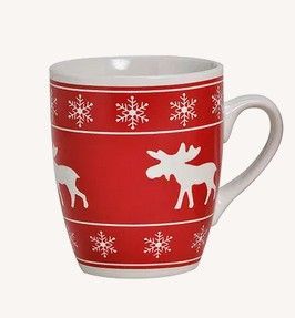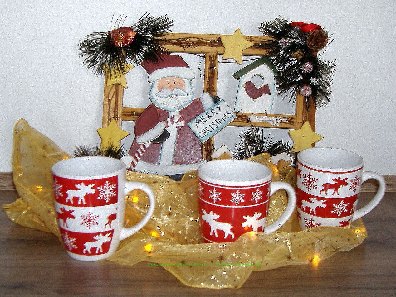 Wurm G. Wurm Becher Elchdekor Tasse Keramik rot-weiß Weihnachtstasse Weihnachten Geschenk