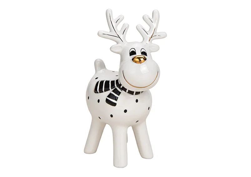 G. Wurm Elch aus Keramik weiß schwarz Weihnachtsdekoration Dekofigur Weihnachten