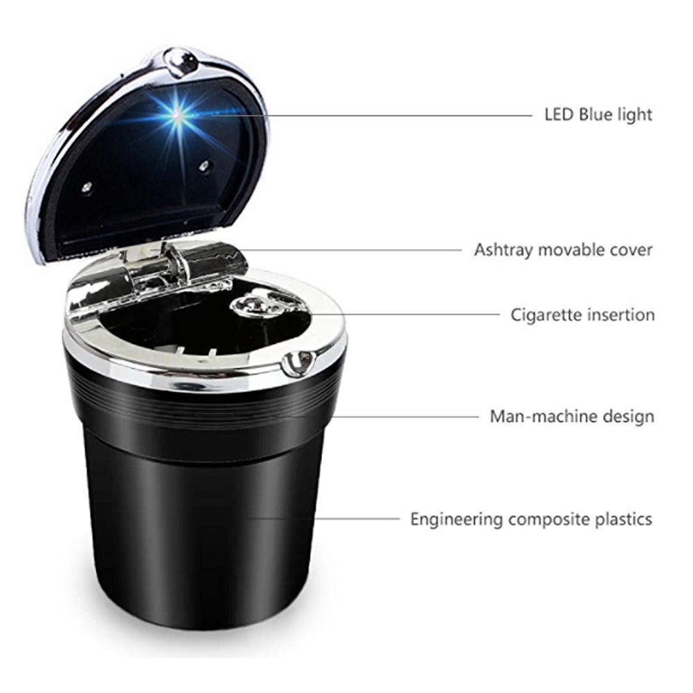 G59C Auto KFZ Aschenbecher mit LED Beleuchtung, Getränkehalter & Gluttöter
