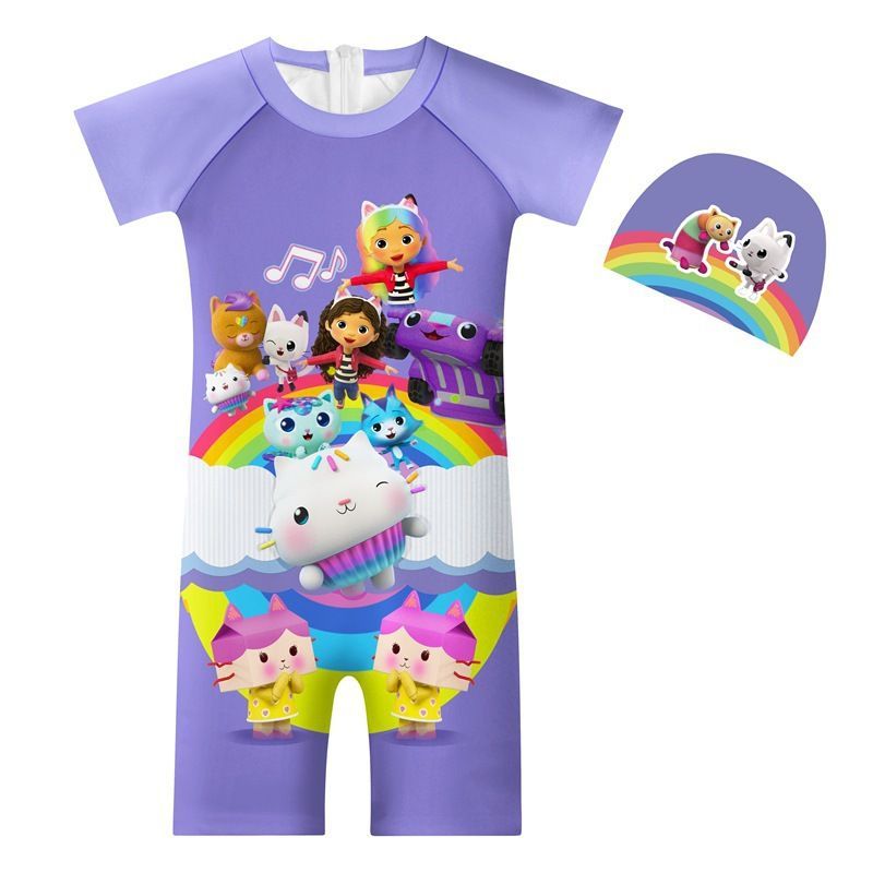 Gabby´s Dollhouse Badeanzug Mädchen One-piece Swimsuit Kurzarm-Shorts Surfanzug
