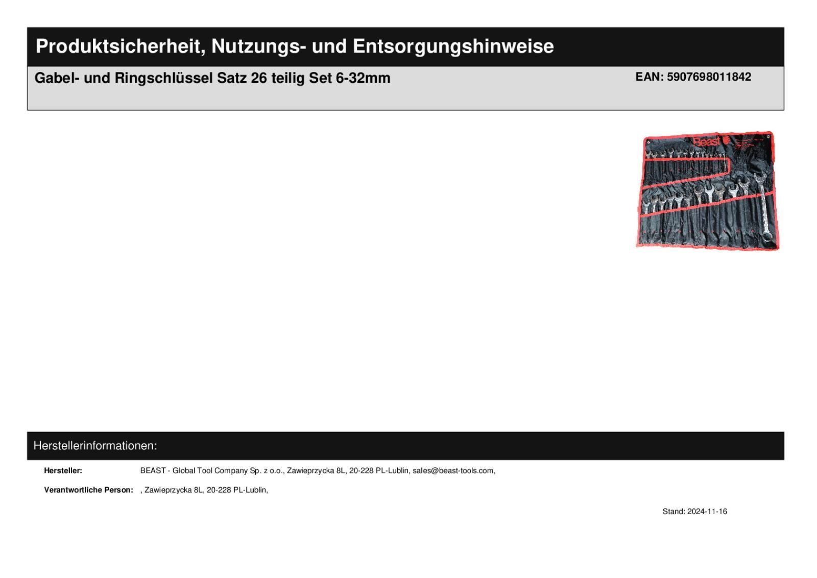 Gabelschlüssel Ringschlüssel Satz 26 teilig Ring-Maulschlüssel 6-32mm in Tasche