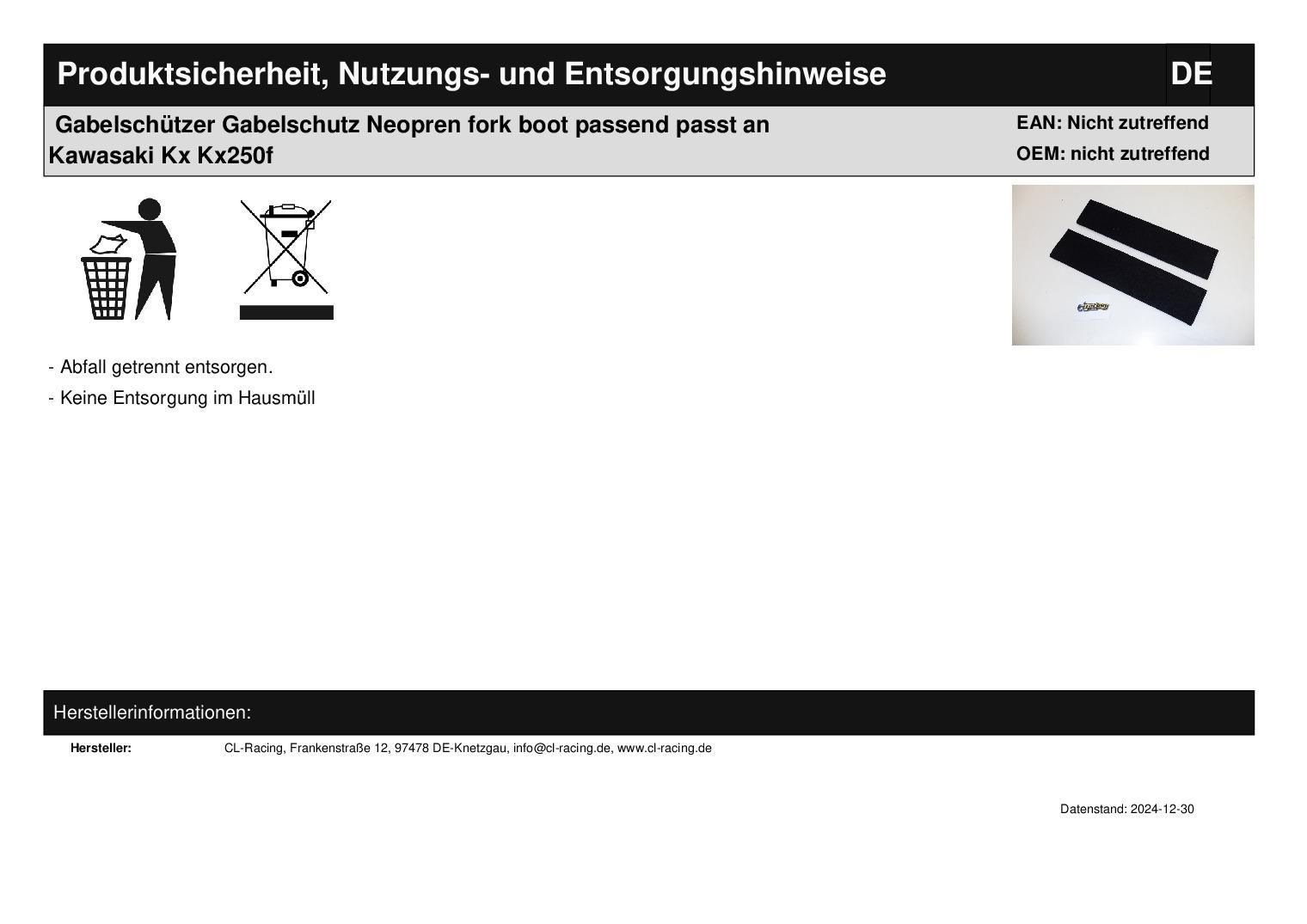 Gabelschützer Gabelschutz Neopren fork boot passend passt an Kawasaki Kx Kx250f In dieser Auktion gibt es folgenden Artikel zu kaufen: Neopren Gabelschutz mit Klettverschluss passend fü r: alle gängigen Enduros und Crosser mit einem Gabeldurchmesser von Ø 43 - 50 mm Größe: Gabeldurchmesser =