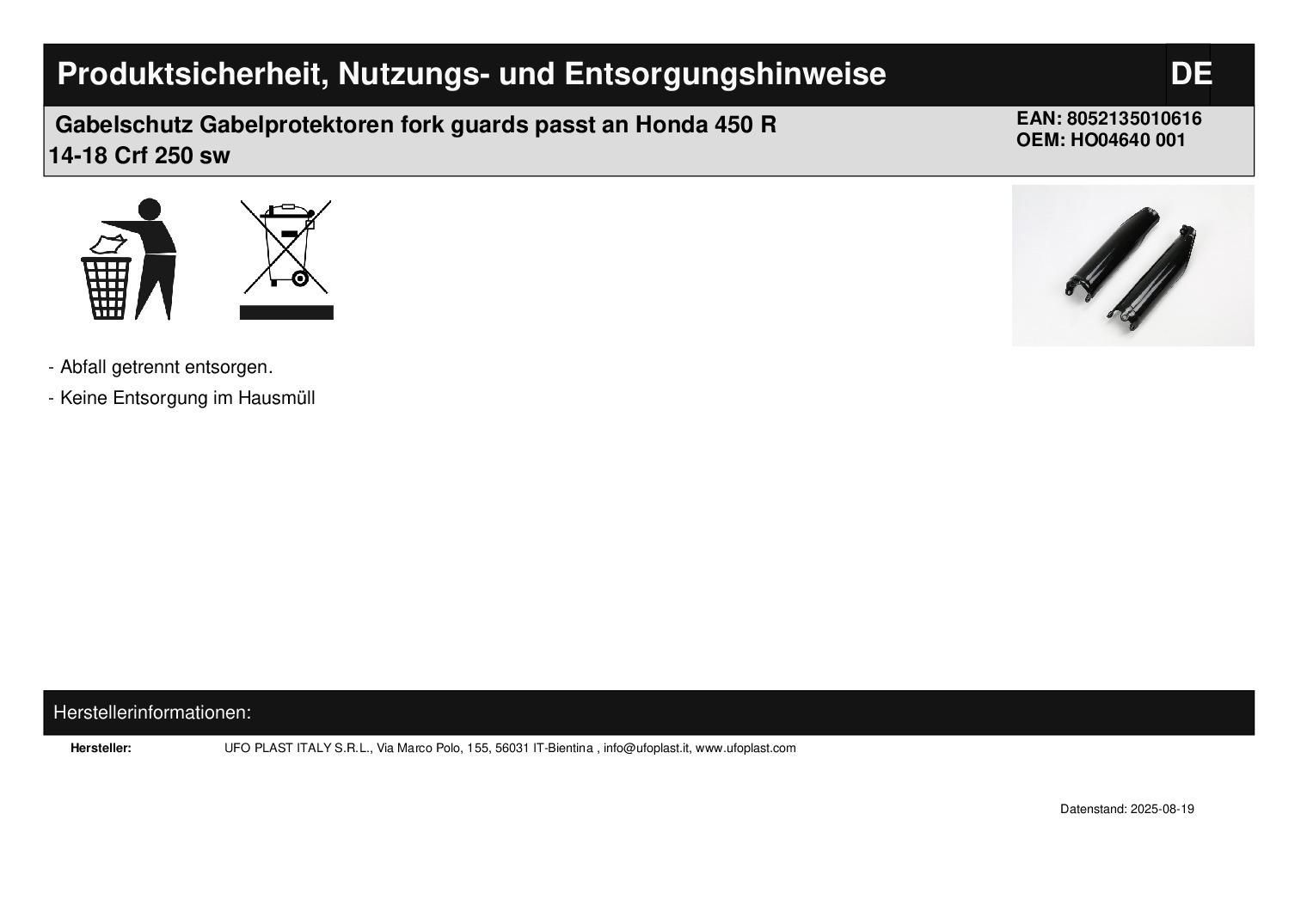 Gabelschutz Gabelprotektoren fork guards passt an Honda 450 R 14-18 Crf 250 sw