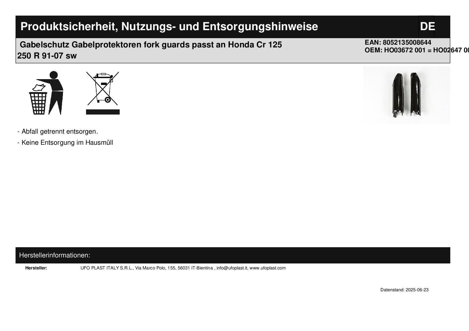 Gabelschutz Gabelprotektoren fork guards passt an Honda Cr 125 250 R 91-07 sw