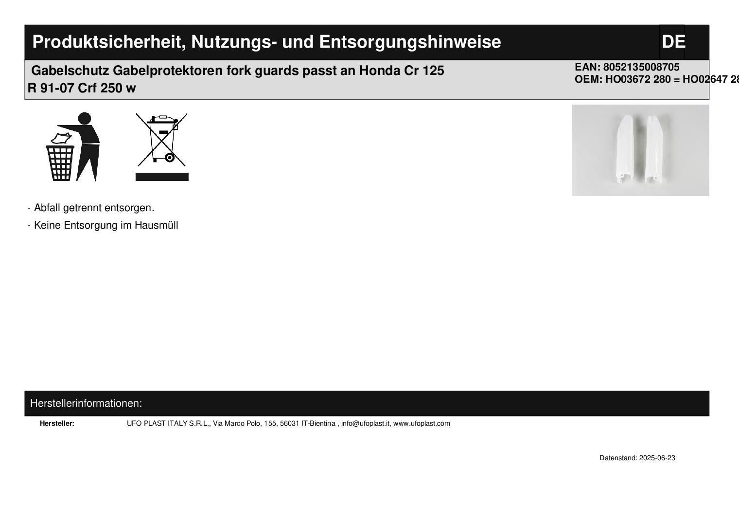 Gabelschutz Gabelprotektoren fork guards passt an Honda Cr 125 R 91-07 Crf 250 w