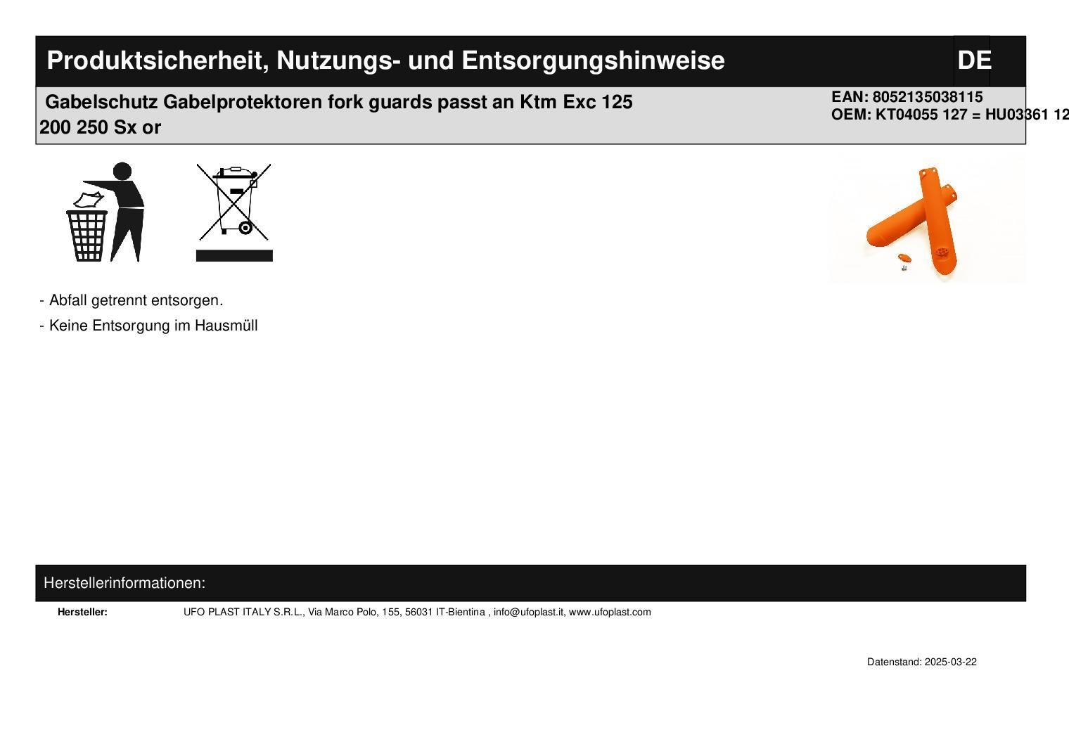 Gabelschutz Gabelprotektoren fork guards passt an Ktm Exc 200 16-23 125 450 or