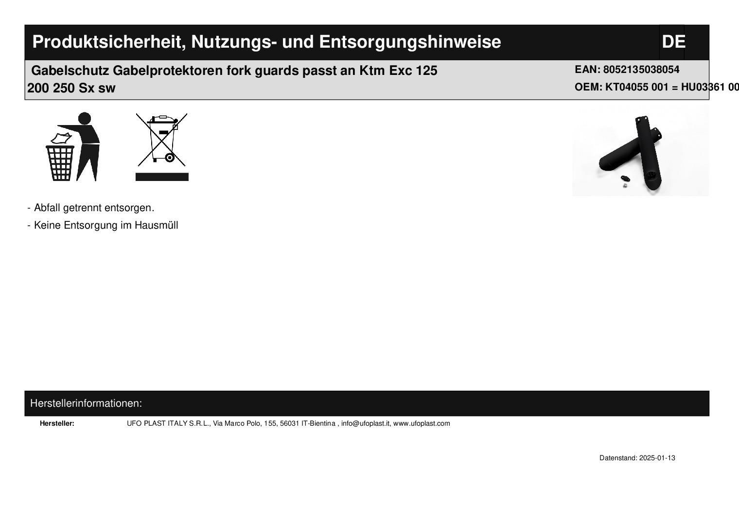 Gabelschutz Gabelprotektoren fork guards passt an Ktm Exc 200 16-23 125 450 sw