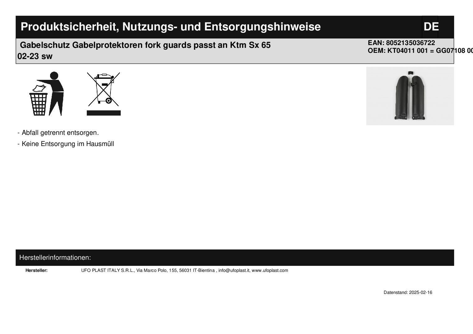Gabelschutz Gabelprotektoren fork guards passt an Ktm Sx 65 02-23 sw
