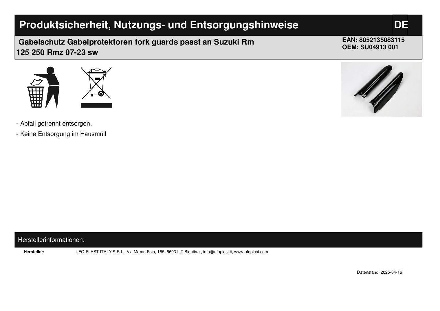 Gabelschutz Gabelprotektoren fork guards passt an Suzuki Rm 125 250 Rmz 07-23 sw
