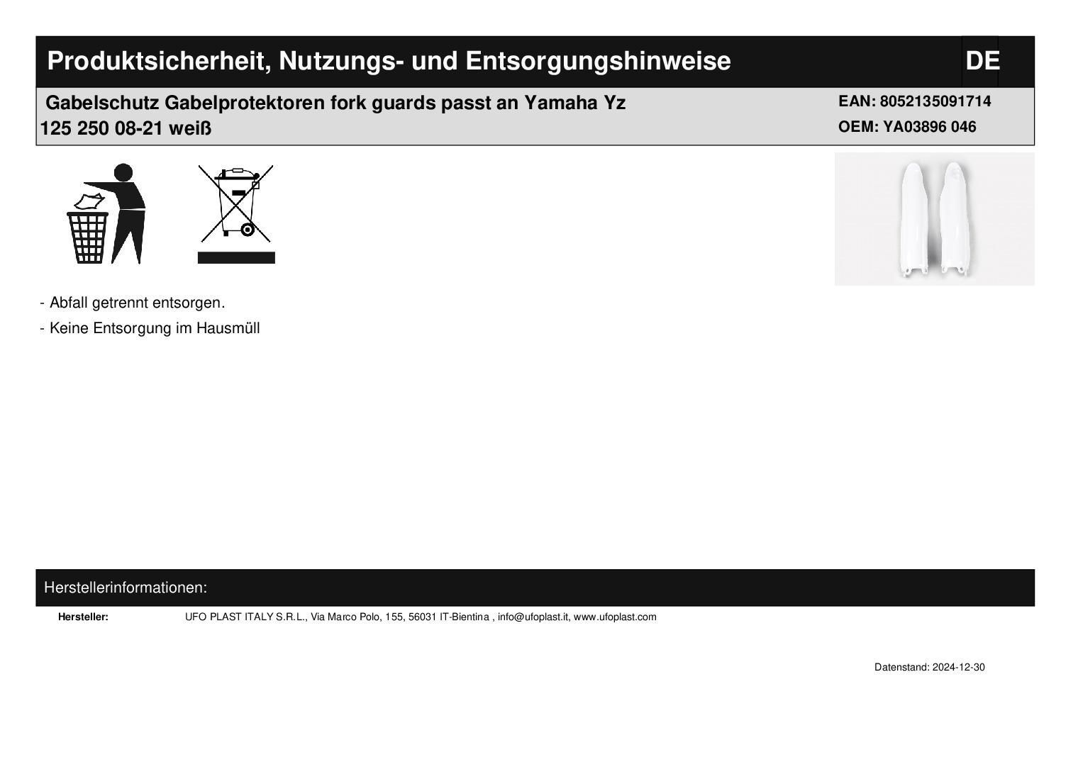 Gabelschutz Gabelprotektoren fork guards passt an Yamaha Yz 125 250 08-21 weiß