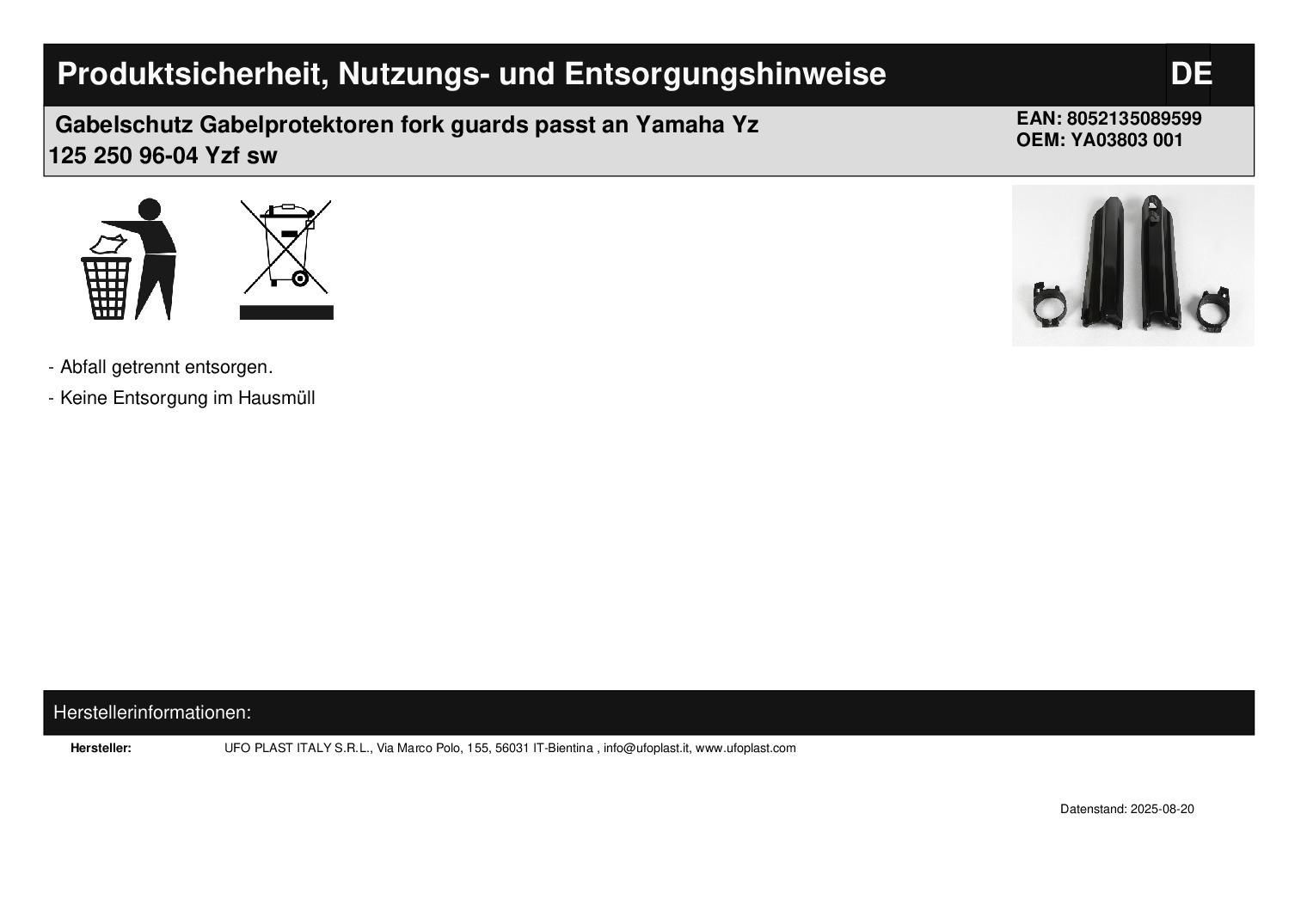 Gabelschutz Gabelprotektoren fork guards passt an Yamaha Yz 125 250 Yzf Wrf sw