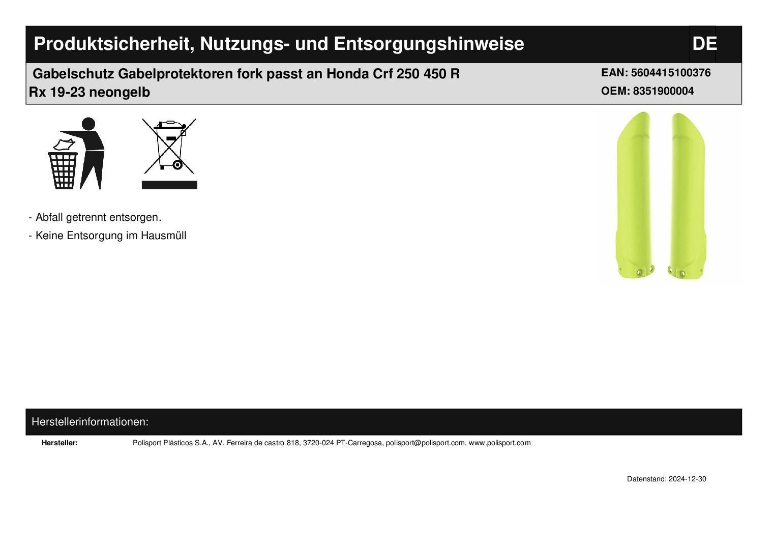 Polisport Gabelschutz Gabelprotektoren fork passt an Honda Crf 250 450 R Rx 19-23 neongelb