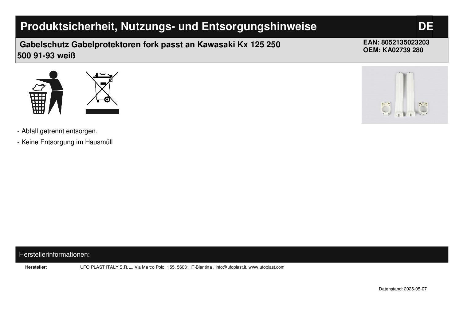 Gabelschutz Gabelprotektoren fork passt an Kawasaki Kx 125 250 500 91-93 weiß