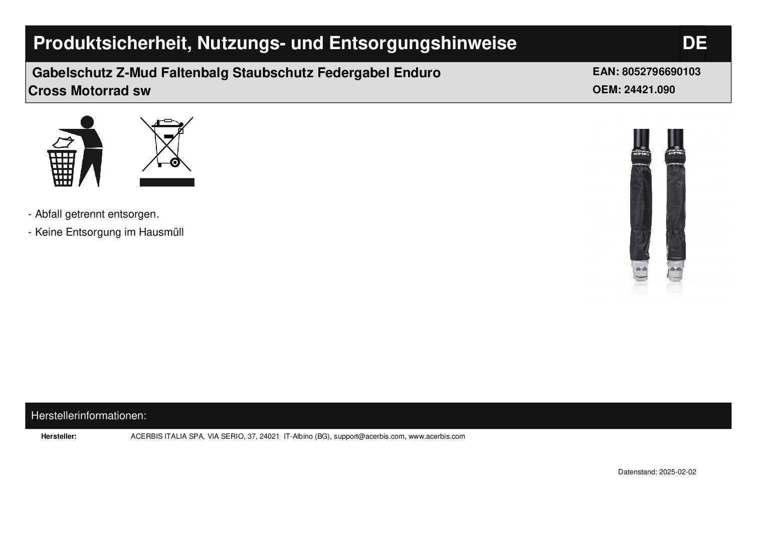 Acerbis Gabelschutz Z-Mud Faltenbalg Staubschutz Federgabel Enduro Cross Motorrad sw