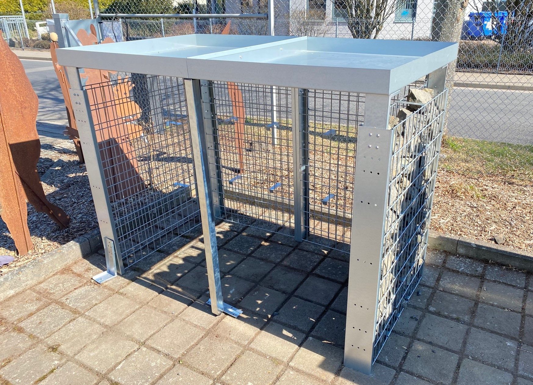 Gabionen Box Müllbox Mülltonnenbox für 2 Mülltonnen (120L + 240L) mit Pflanzdach