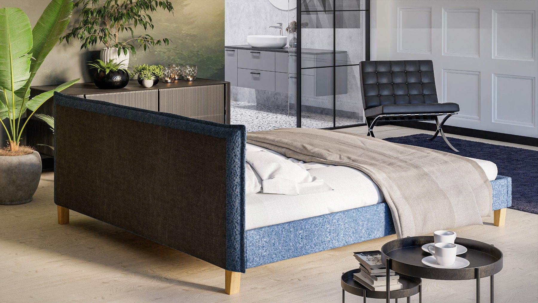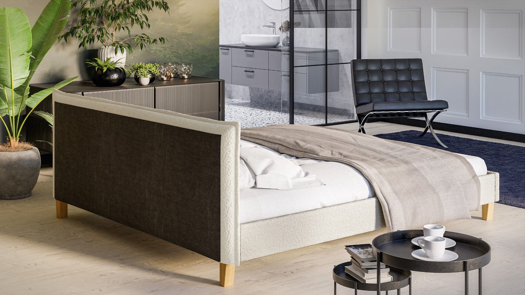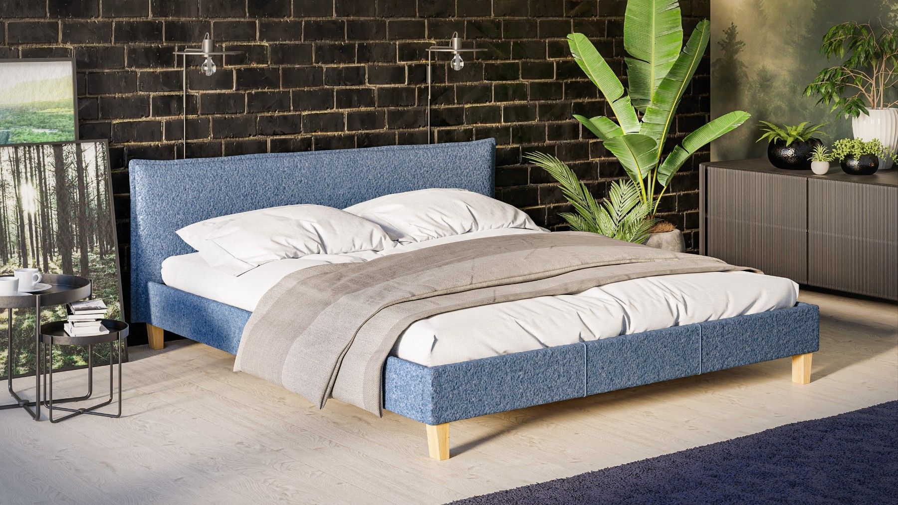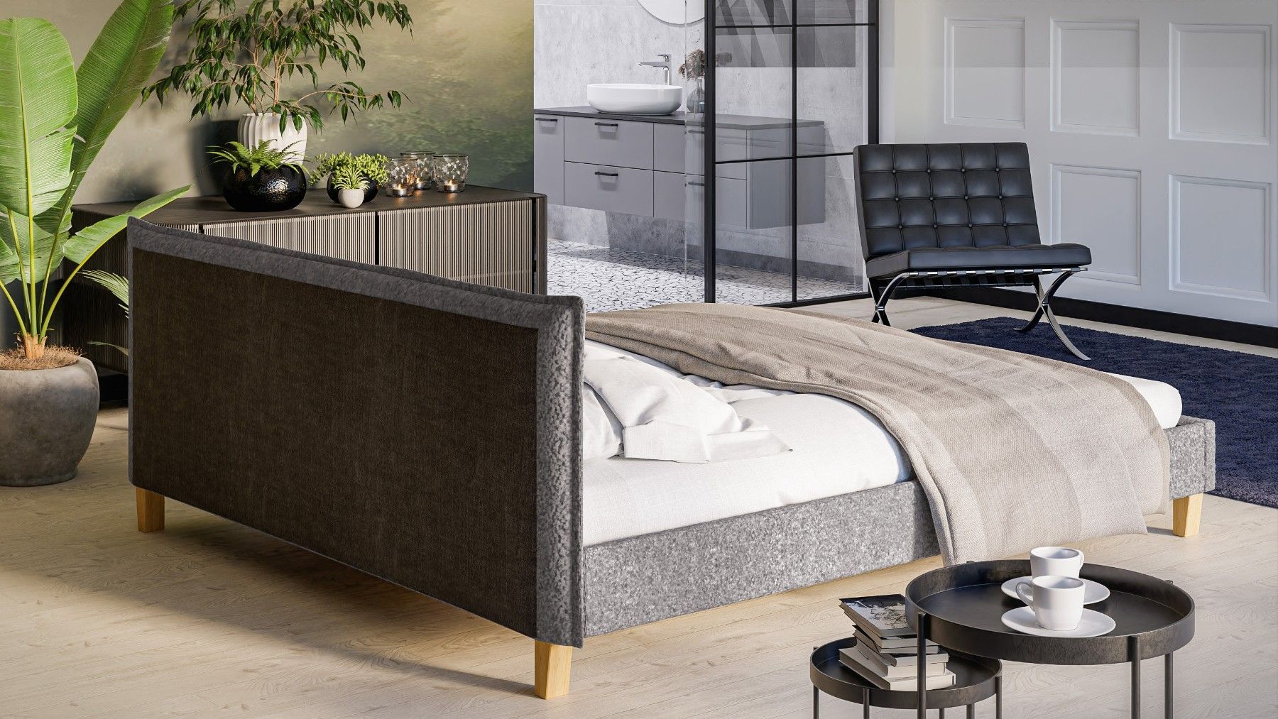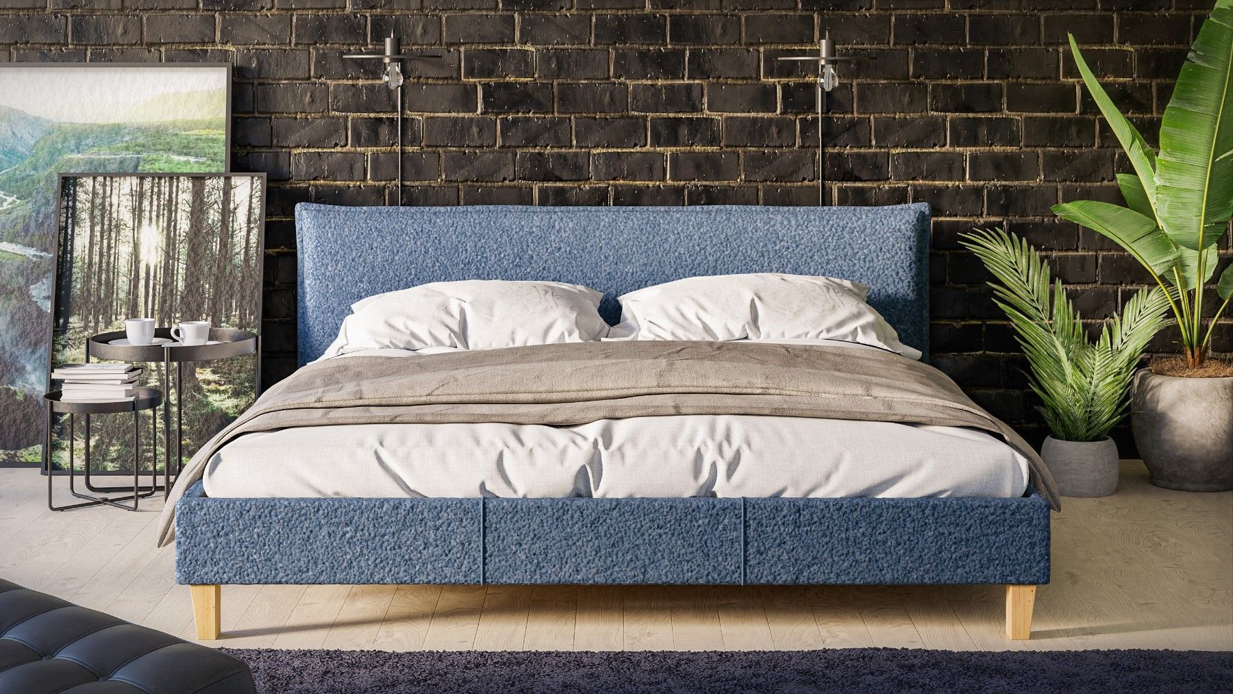 Gabriella - Polsterbett Boucle Stoff Füße aus Massivholz