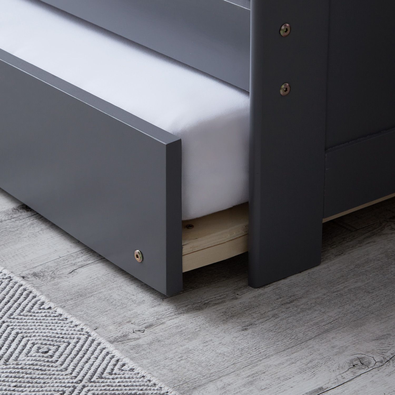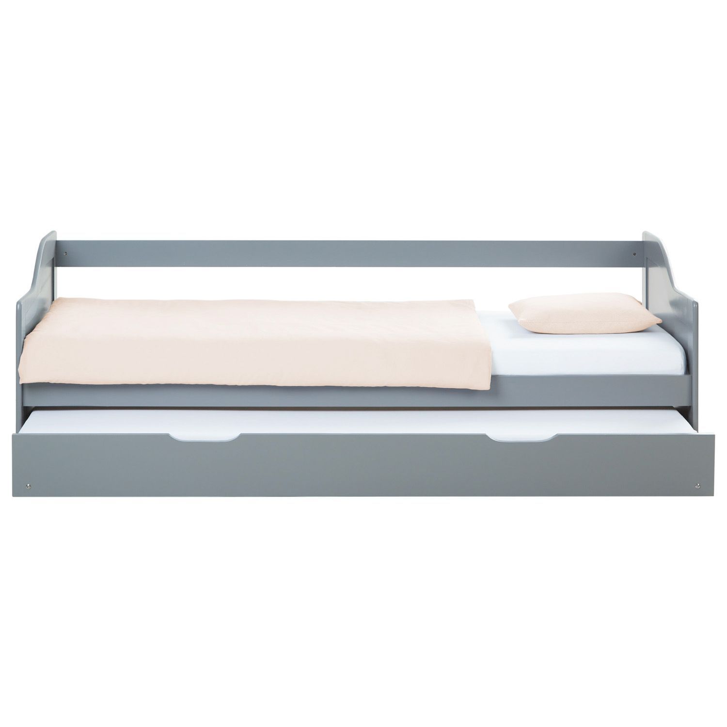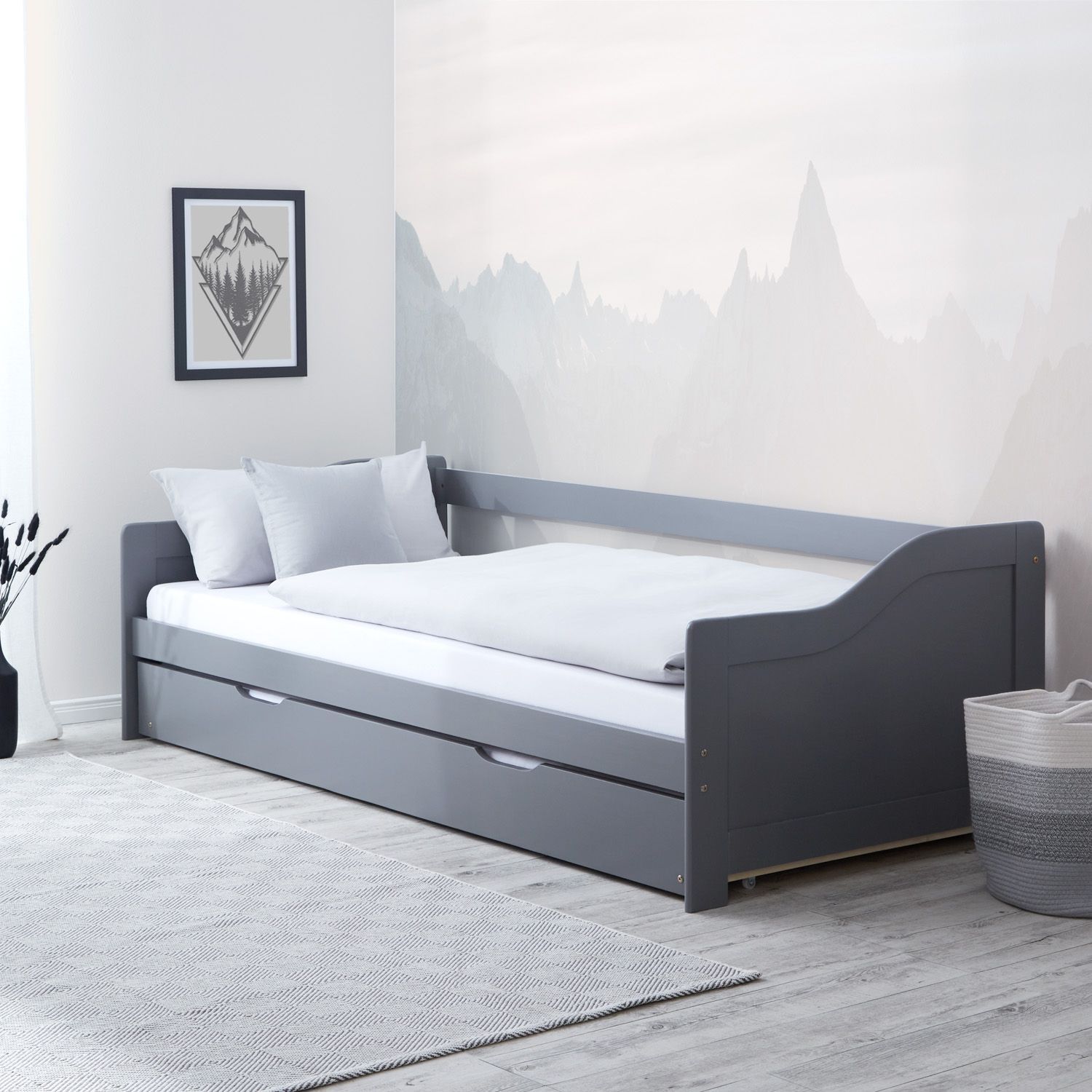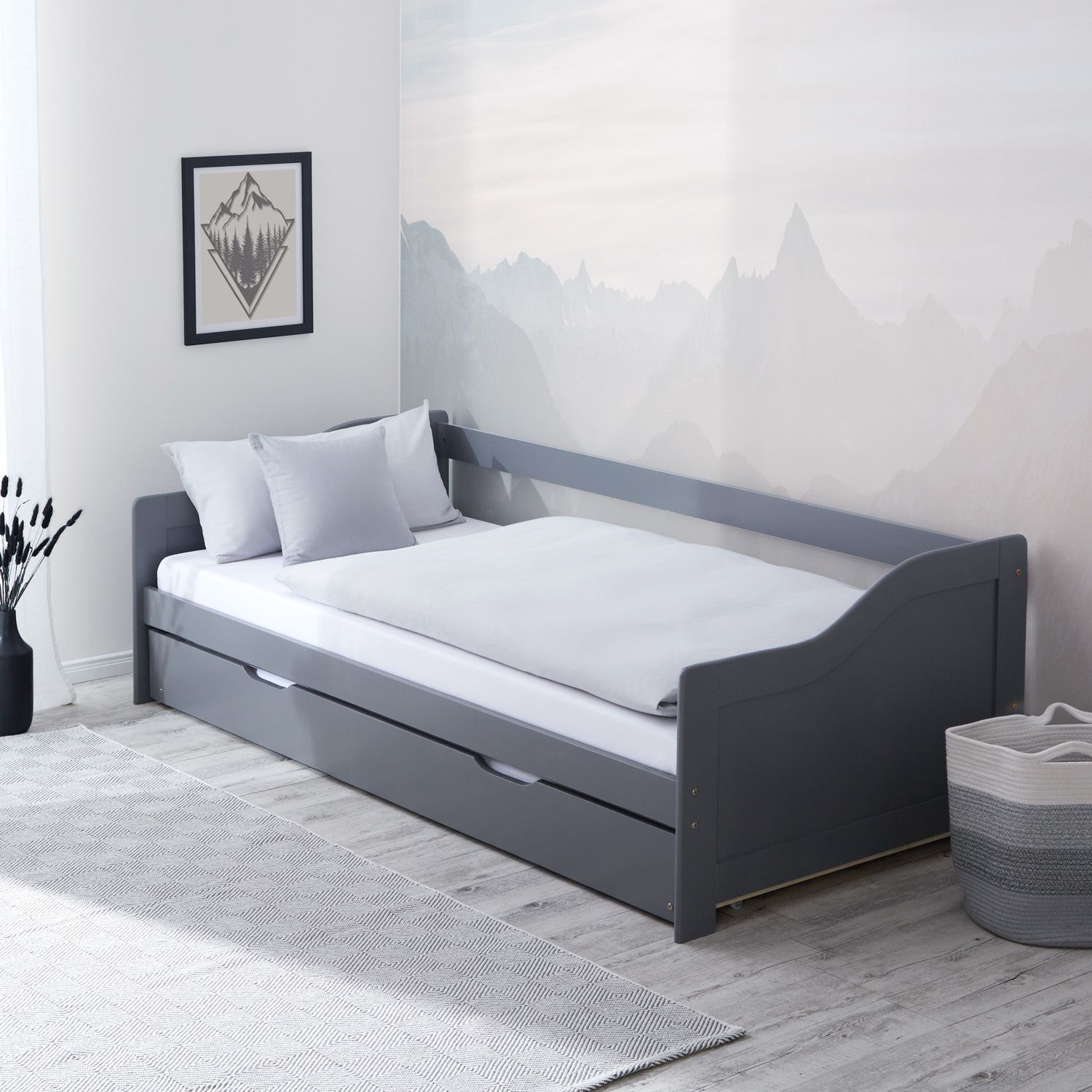 Gästebett Holzbett 90x200 cm Weiß Grau Natur Tagesbett ausziehbar Jugendbett Auszi