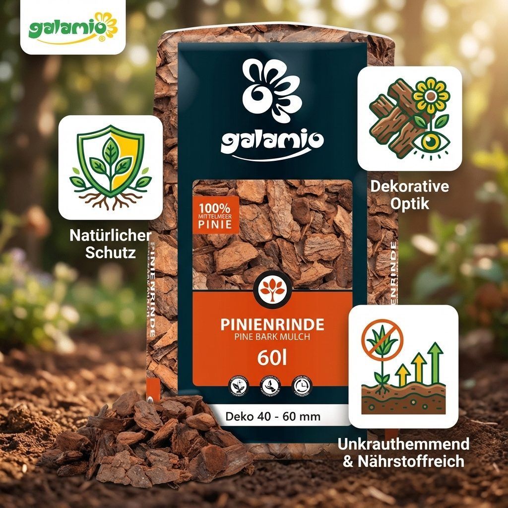 Ich hatte Pinienrinde 40-60 mm gekauft, allerdings waren auch sehr viele größere Stücke dazwischen. Beim nächsten Mal würde ich eine kleiner Stücklung kaufen. Lässt sich sicher besser verteilen.
