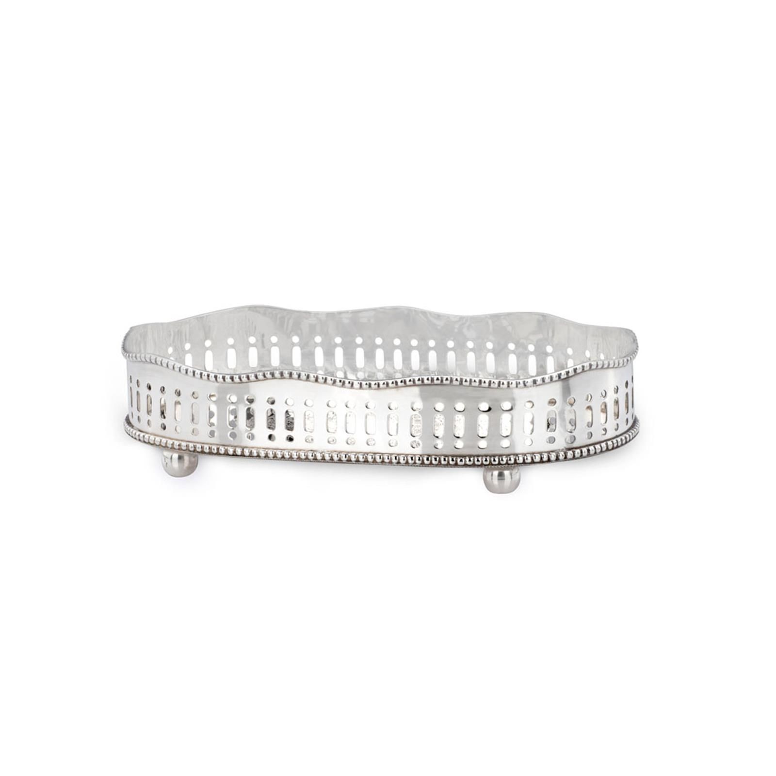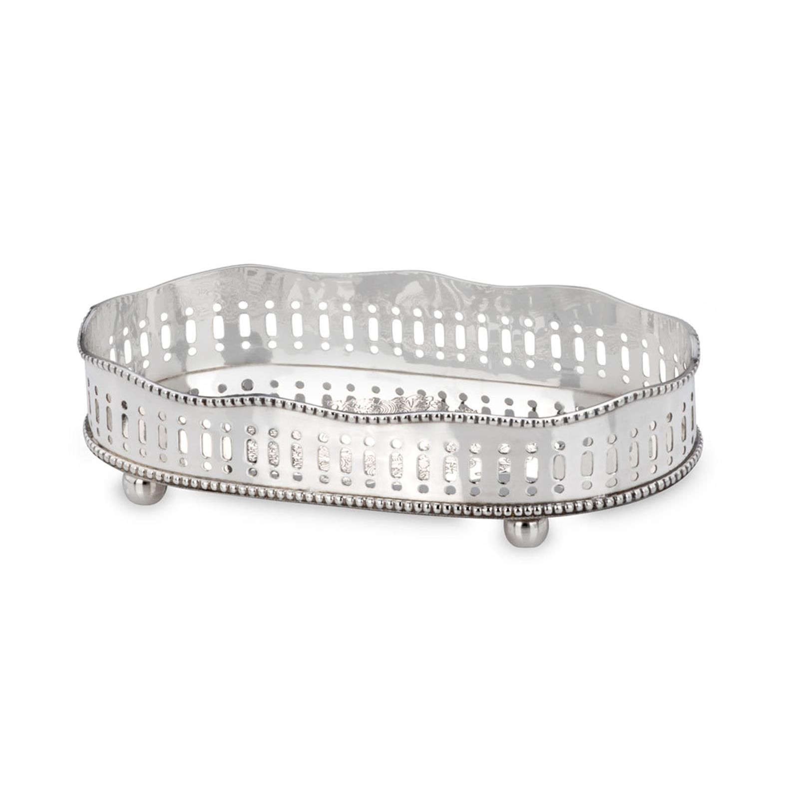Galerie Tablett 23 x 12 cm oval versilbert Dekotablett Kugelfüßen Silbertablett