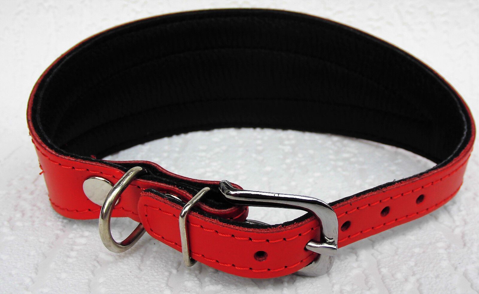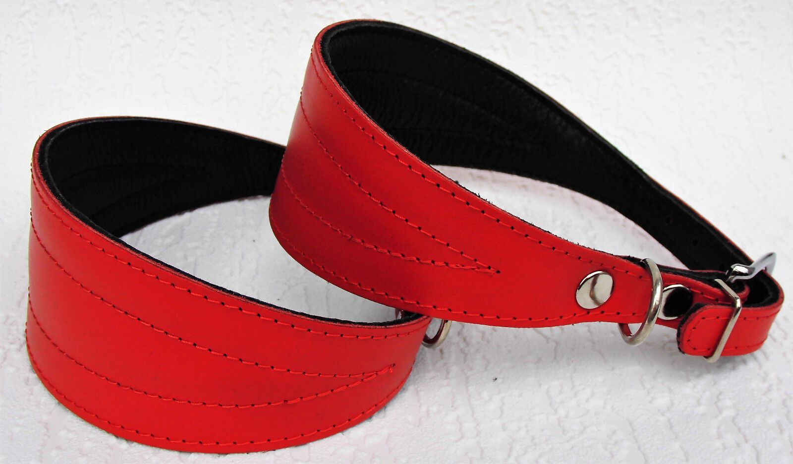 Galgo Greyhound Windhund - Halsband, Halsumfang 41-50cm Leder + Rot (656)