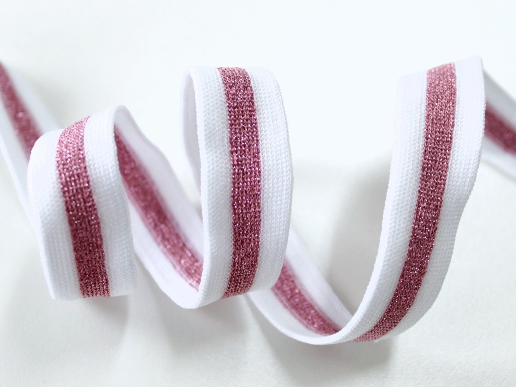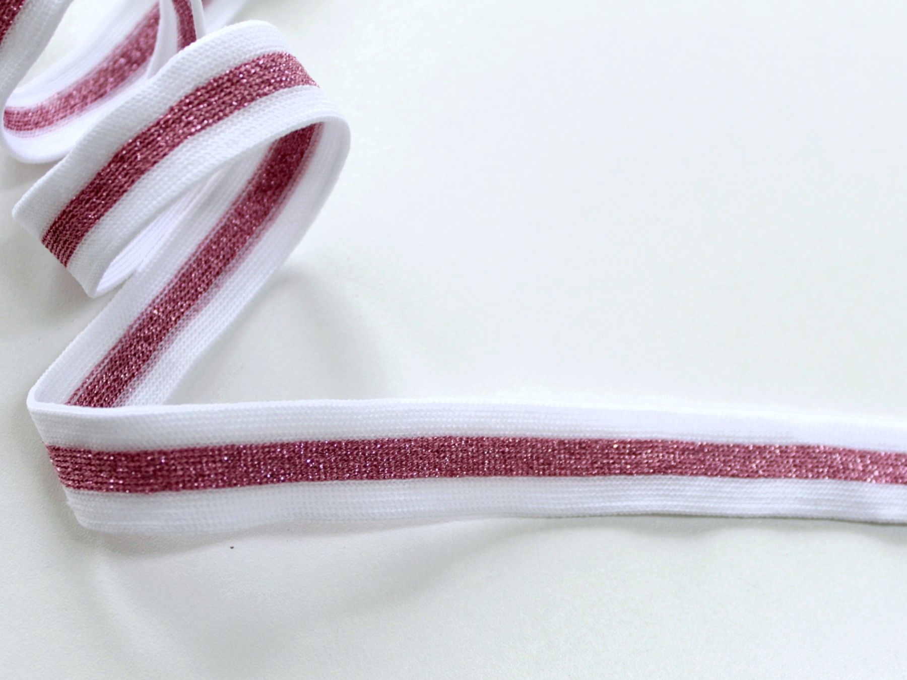 Galonband "weiß-glitzerpink ", Galonstreifen, Jerseyband, 2,5 cm breit