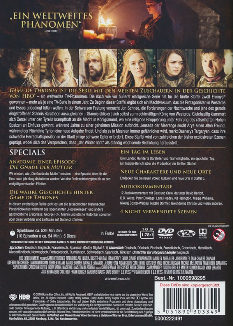 Game of Thrones - kompl. Staffel 5 (DVD) 5DVDs, Neuauflage - W