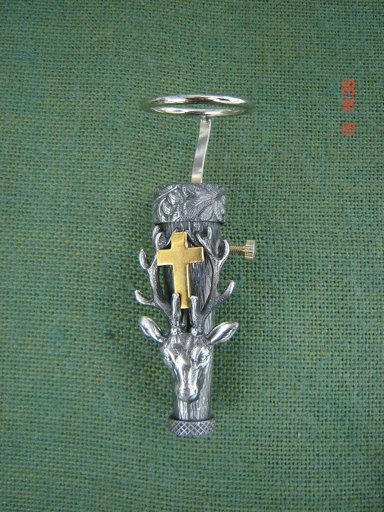 Gamsbarthalter Hubertushirsch schöner Halter versilbert mit Ring für Gamsbart s-p
