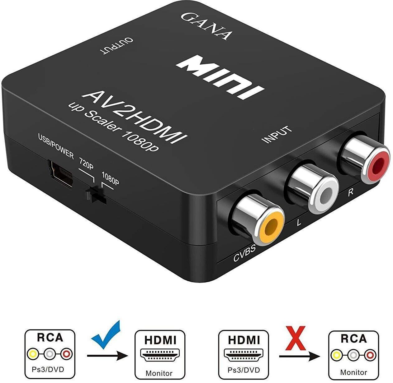 GANA RCA AV auf HDMI Konverter Adapter 1080P PC/Nintendo/Xbox/PS4/PS3/PS2/TV/STB