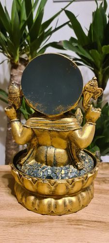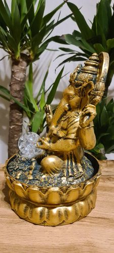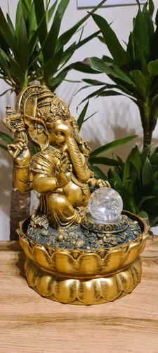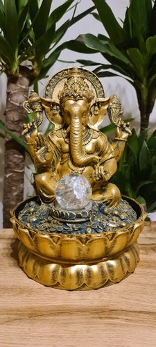 Ganesha Ganesh Brunnen mit LED und Glaskugel gold schwarz Neu