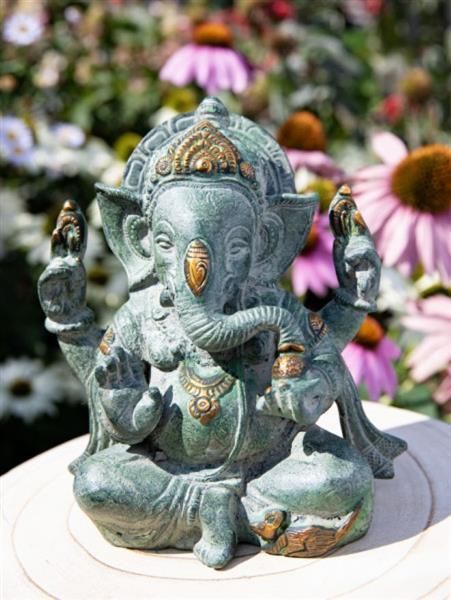 Ganesha Messing Sandstein grün gold 16 cm 2,1 kg Skulptur Buddhafigur
