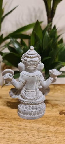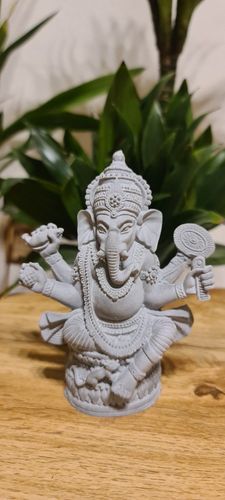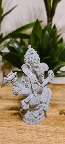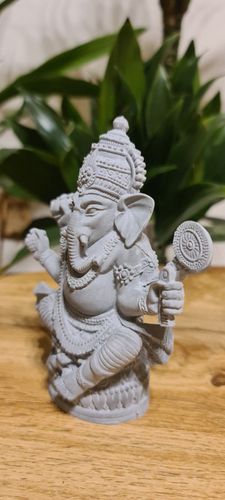 Wunderschöne Ganesha Statue Diese detailreiche Figur des Elefantengottes ist perfekt als Dekoration und symbolisiert Glück und Erfolg. Sie ist aus einem robusten, grauen Material gefertigt und zeigt Ganesha in seiner klassischen, sitzenden Pose mit vielen feinen Details und Verzierungen. Sie ist ein