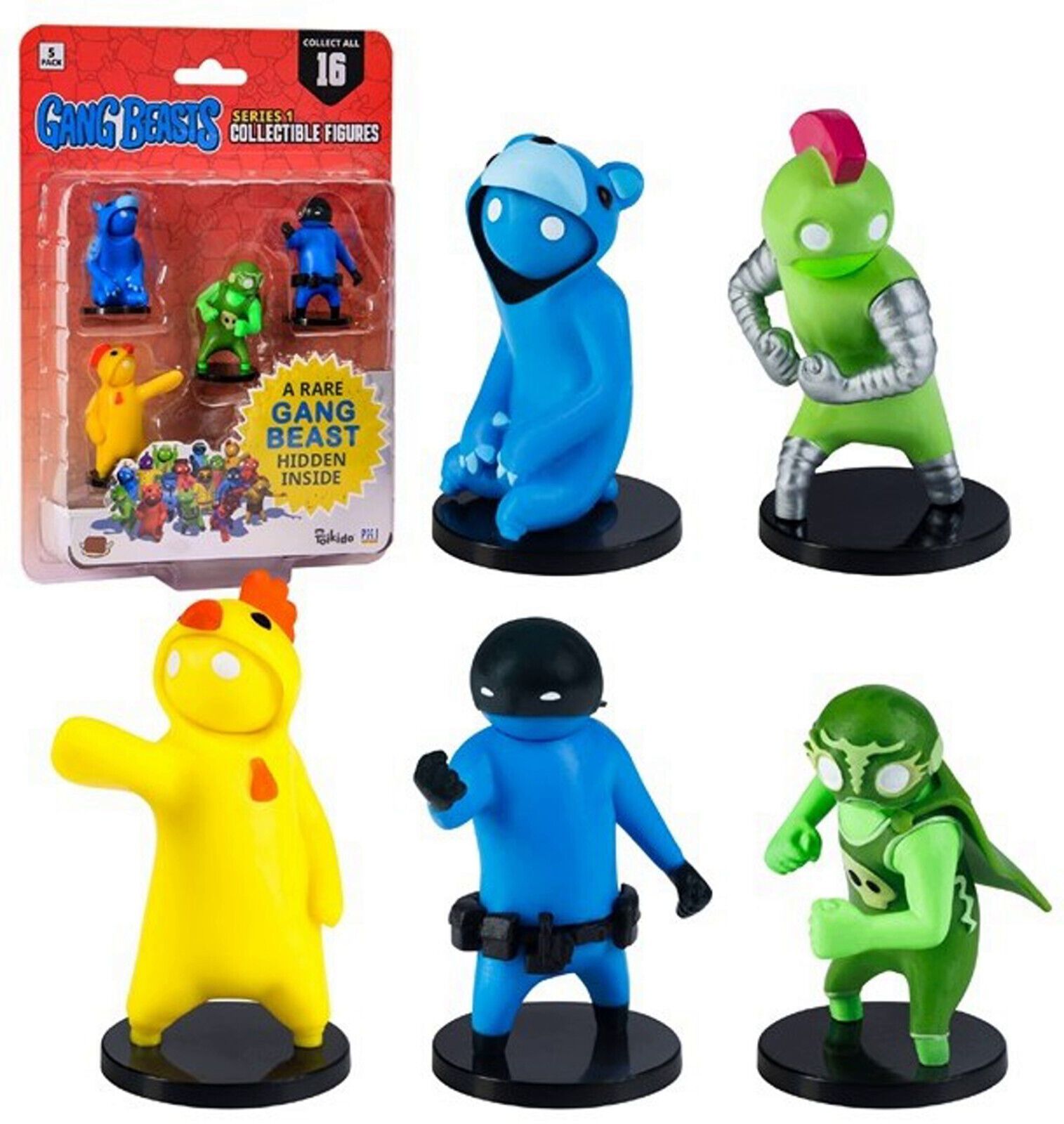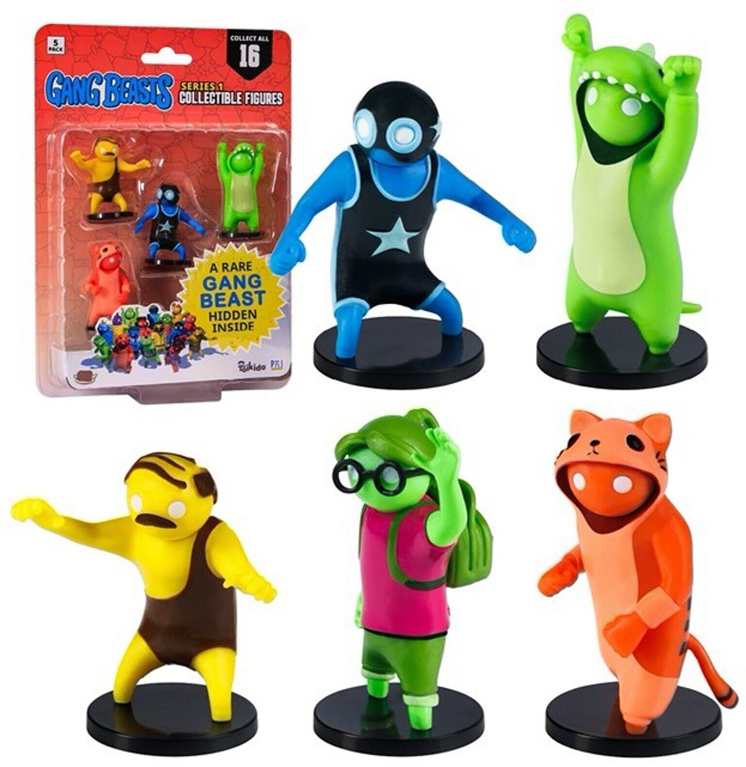 Gang Beasts Serie 1 4+1 Figur Actionfiguren ca. 6 cm Groß NEU OVP 5 Figuren Packung 4 Sichtbare und eine Überaschungsfigur. ACHTUNG! Nicht geeignet für Kinder unter 3 Jahren. Enthält Kleinteile, die verschluckt werden können. Erstickungsgefahr!