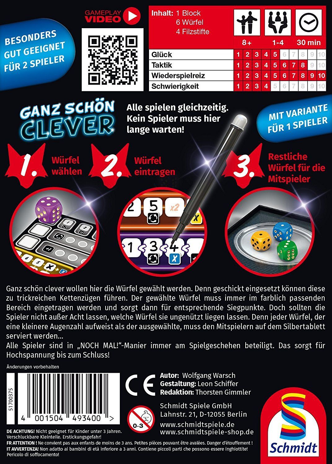 • Schmidt Spiele 49340 Ganz Schön Clever Wérfelspiel Familienspiel Klein & Fein