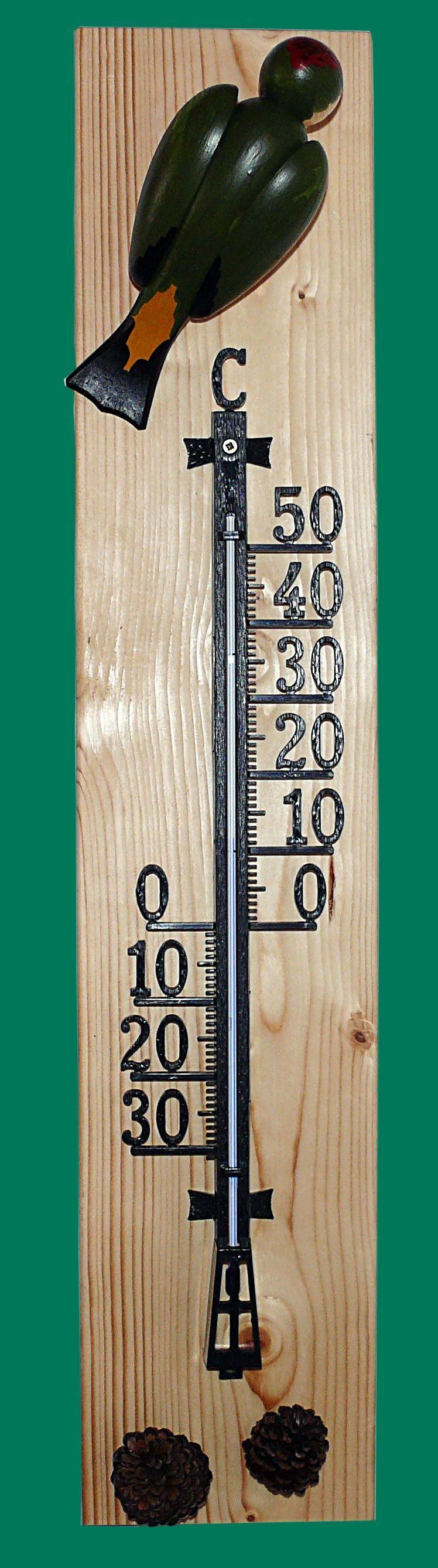 Ganzjahresdekoration Thermometer mit Grünspecht Höhe 72cm NEU Figu