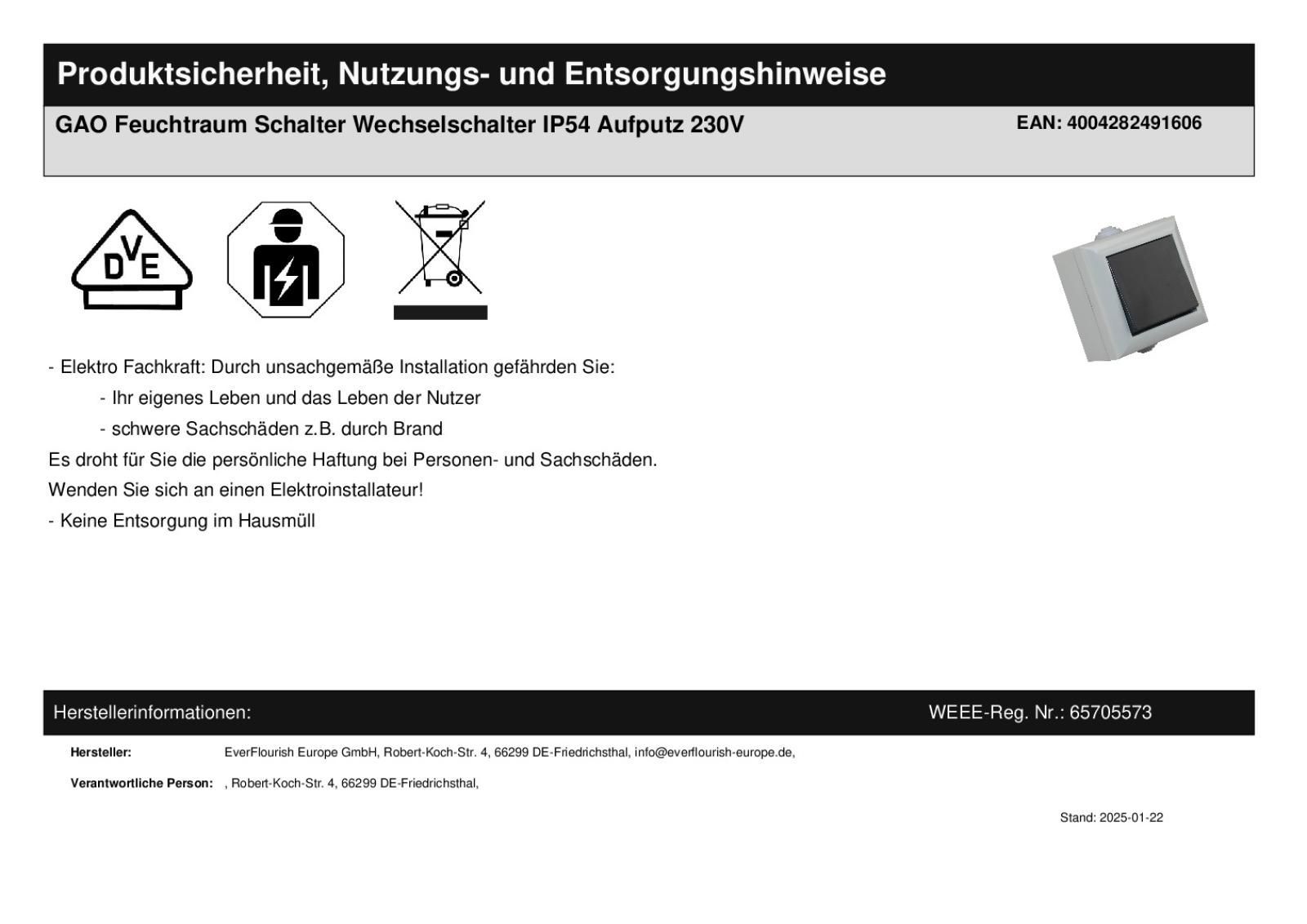 GAO Business Line Feuchtraum Schalter Wechselschalter IP54 Aufputz 230V