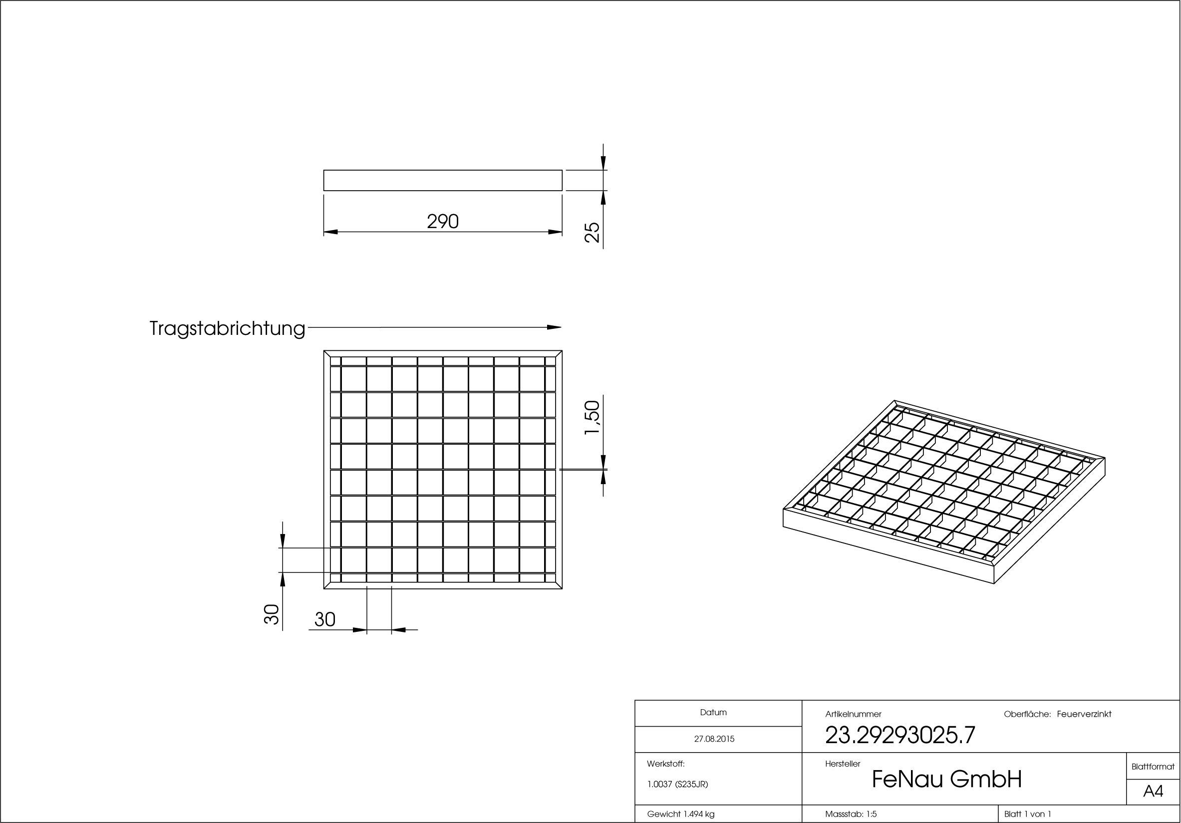 Garagen-Gitterrost | Maße: 290x290x25 mm 30/30 mm | aus S235JR (St37-2), im Vollbad