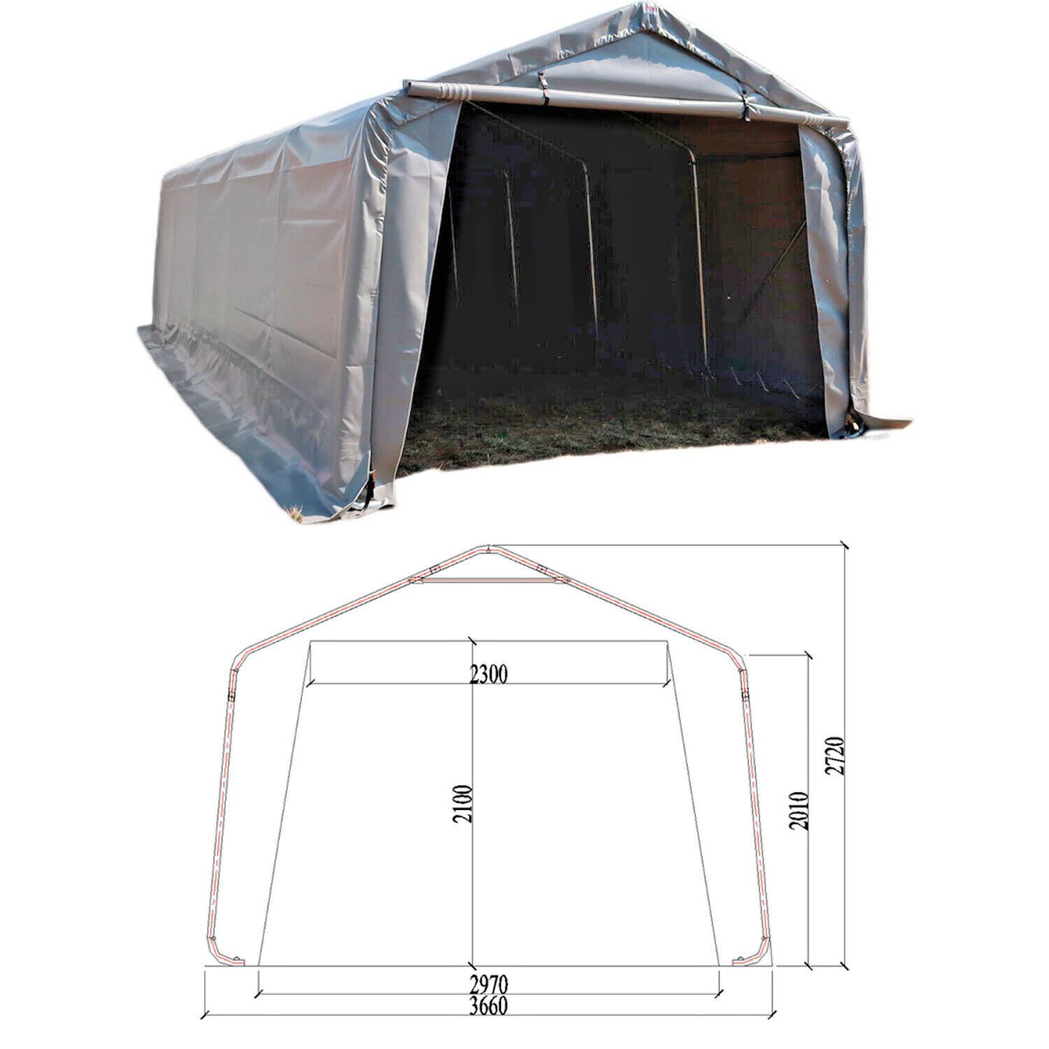 Garagenzelt 610 g/m² Lagerzelt 8 x 3,66 x 2,72 m Wasserdicht Zelthalle robust