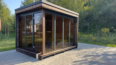 GardenAndPoolsCom Sauna Saunafass Gartensauna Panorama 4 x 2,4 m Ruhe Raum