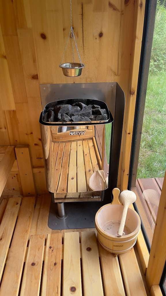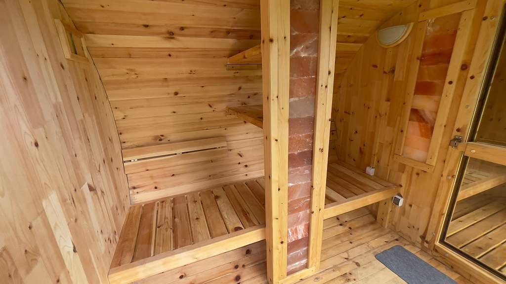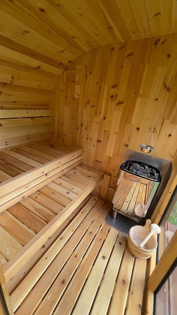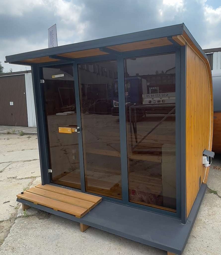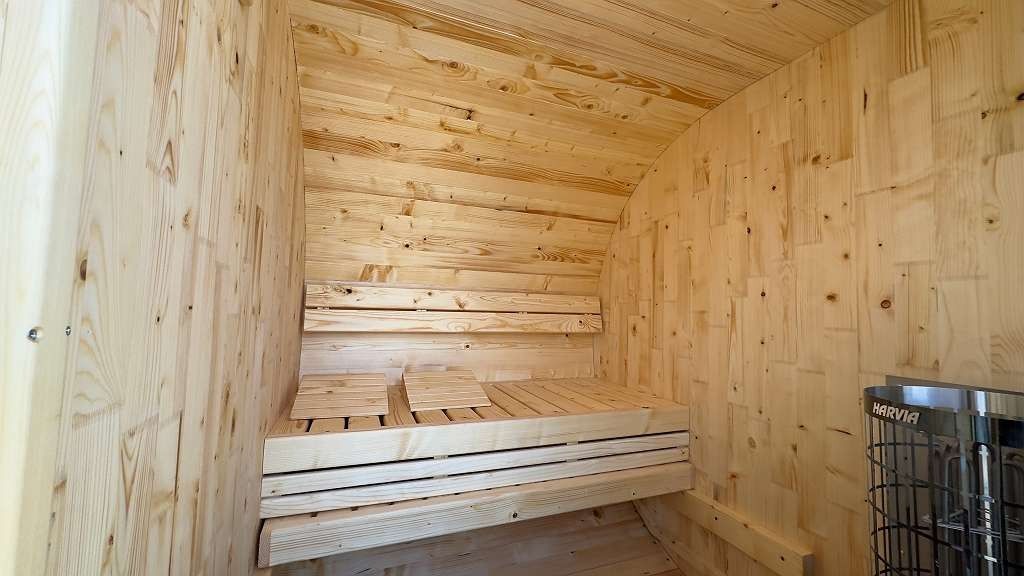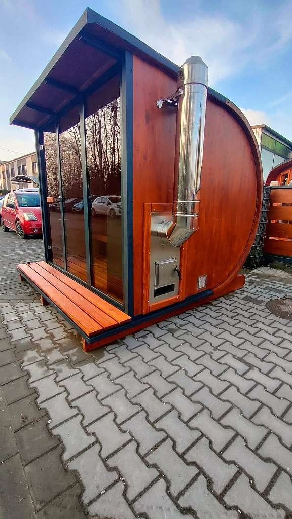 GardenAndPoolsCom Gartensauna Outdoorsauna Saunahaus Fass Sauna 2,4x2,4m Horizont M3