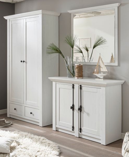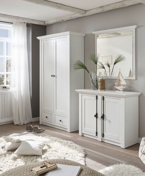 Garderobe Flur Garderoben-Set weiß Pinie Landhaus Set 3-tlg. mit Schrank Diele Hooge