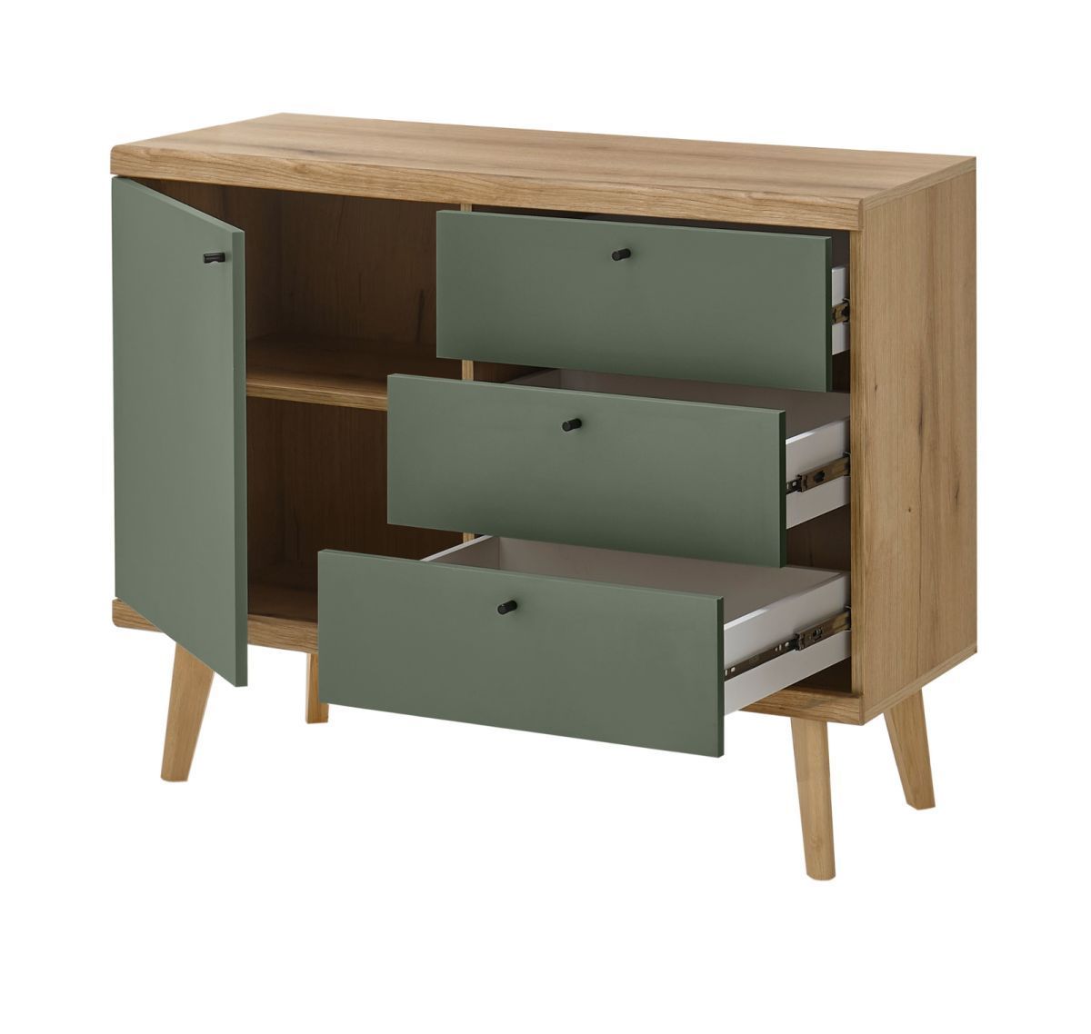 Garderobe Flurgarderobe Eiche Evoke Salbei Flur Möbel Set 3-tlg. mit Kommode Juna