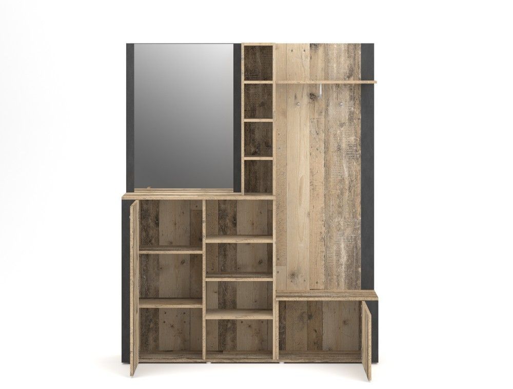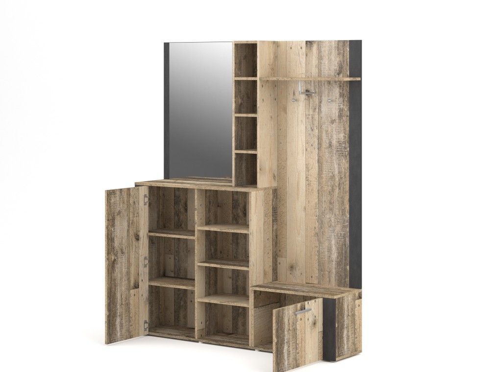 Garderobe Garderobenmöbel Flurgarderobe Dielenset Wohnmöbell Old Style Anthrazit