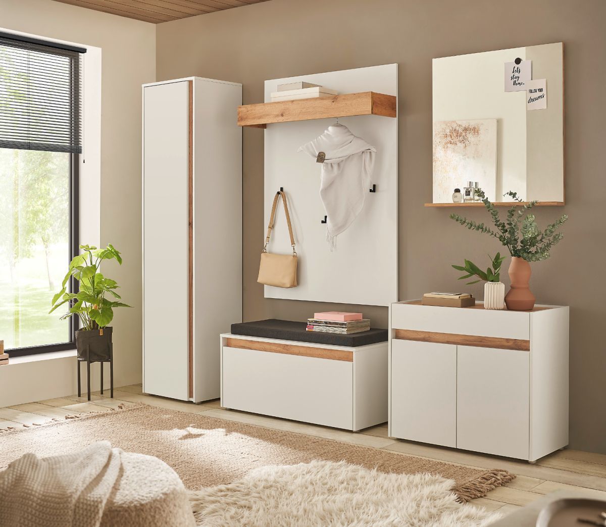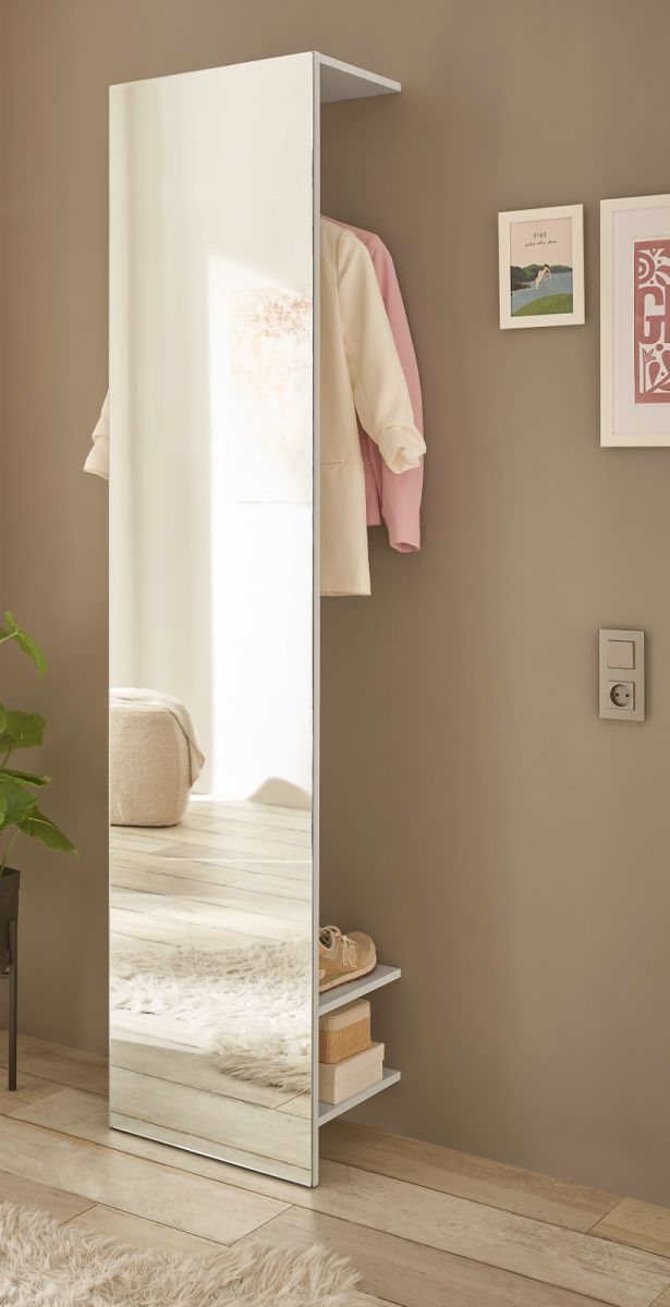 Garderobe Kompaktgarderobe mit Spiegel weiß Flur Garderobenschrank Center 50 x 200 cm