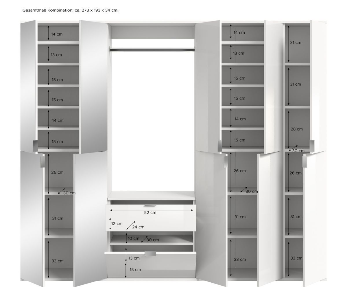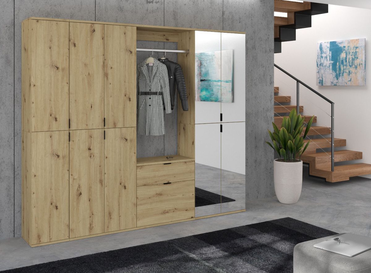 Garderobe komplett Set Garderobenschrank Flur Schuhschrank mit Spiegel Eiche Line-Up