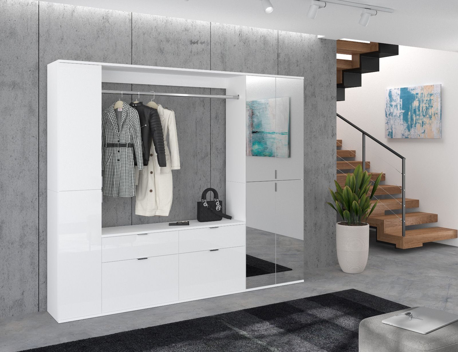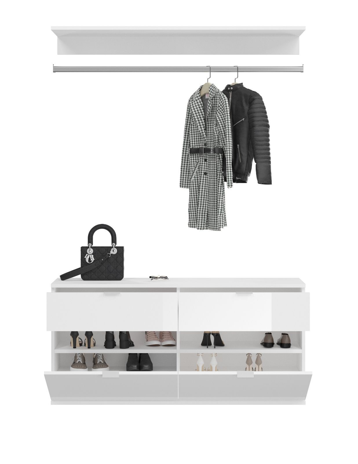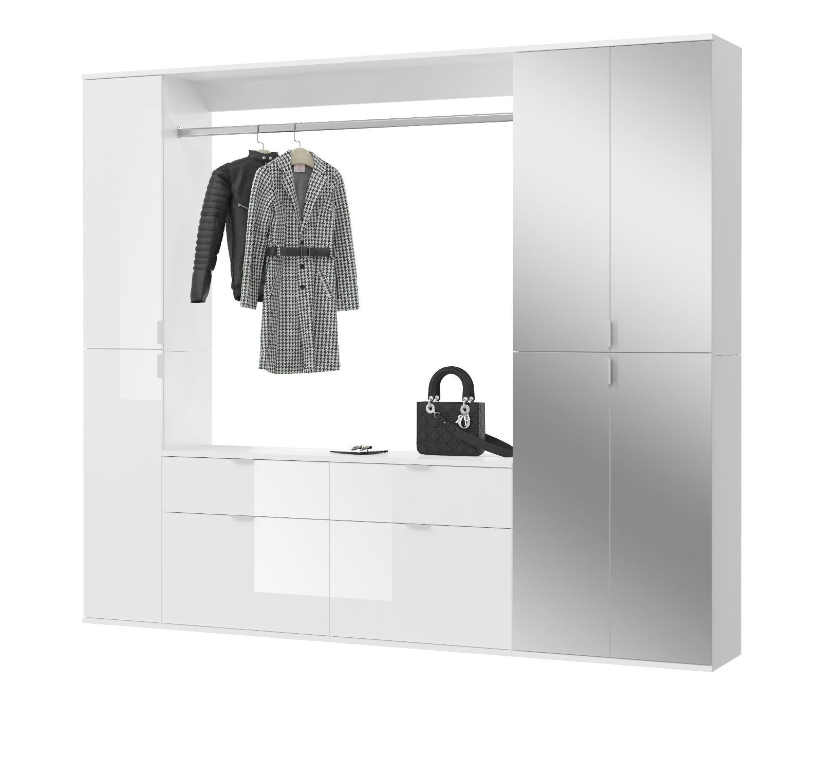 Garderobe komplett Set Garderobenschrank Schuhschrank in weiß Hochglanz SystemX