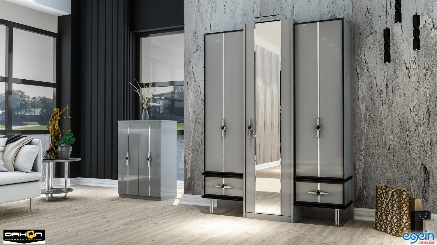 Garderobe Mercan Diele mit Spiegel in grau D-M Im Angebot enthalten: Garderobe Mercan mit Spiegel 1x Garderobe Maße ca.: B H T: 152 x 200 x 42 cm mit Spiegel in metallic chrom grau Produktinformation: pflegeleichte Oberfläche MDF Holzwerkstoff Die Ware wird zerlegt geliefert und muss montiert werden